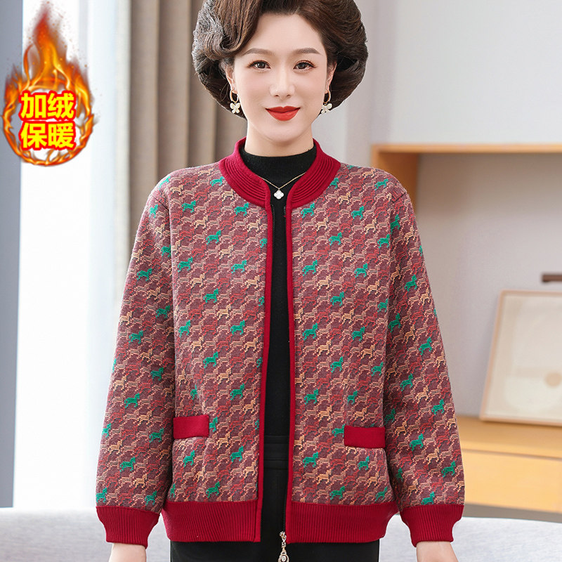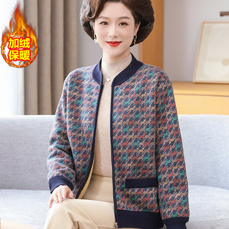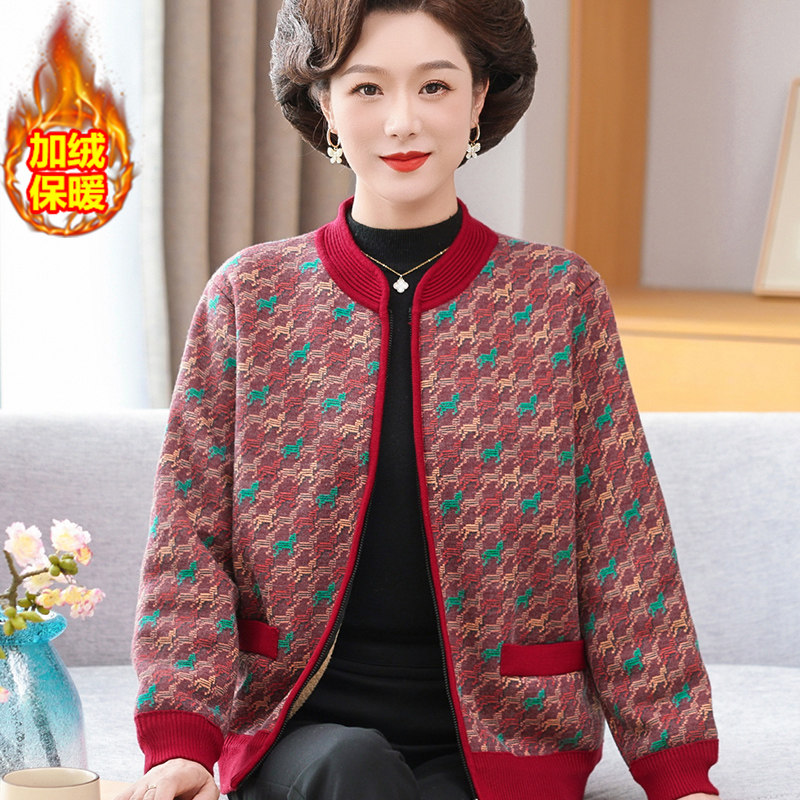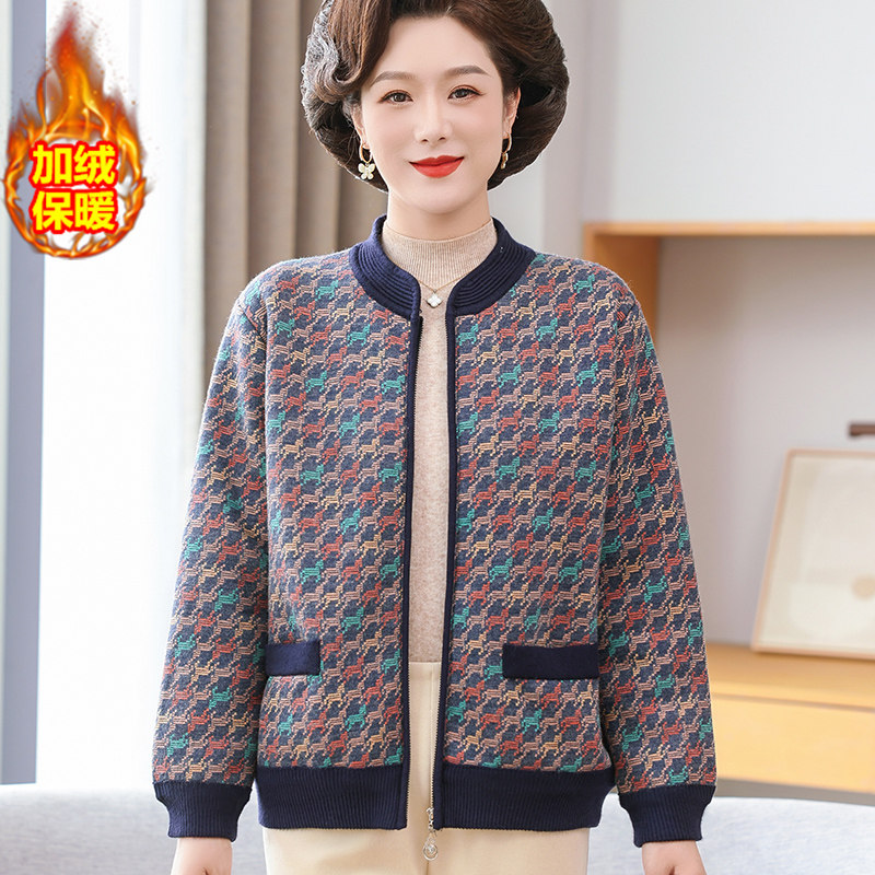 中老年女装秋冬加绒加厚外套60岁70奶奶装保暖上衣老年人开衫套装
