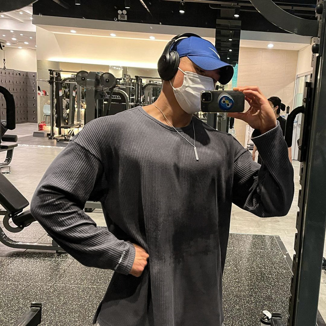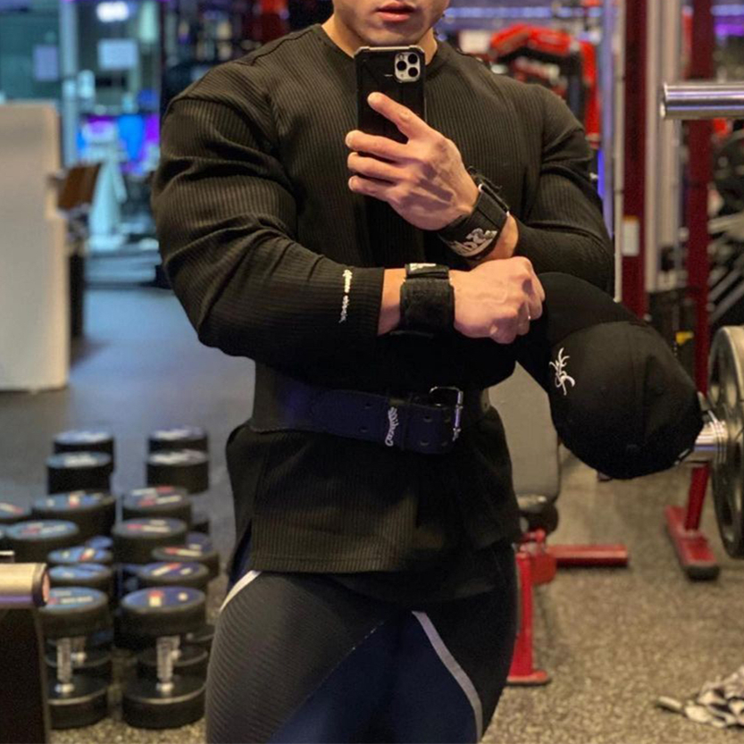 健身训练男圆领条纹长袖