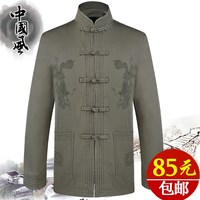 春秋唐装夹克男式纯棉外套中老年中式汉服长袖上衣休闲爷爷装包邮