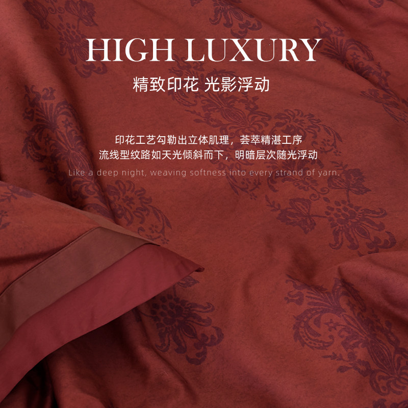 长绒棉红色印花婚庆四件套