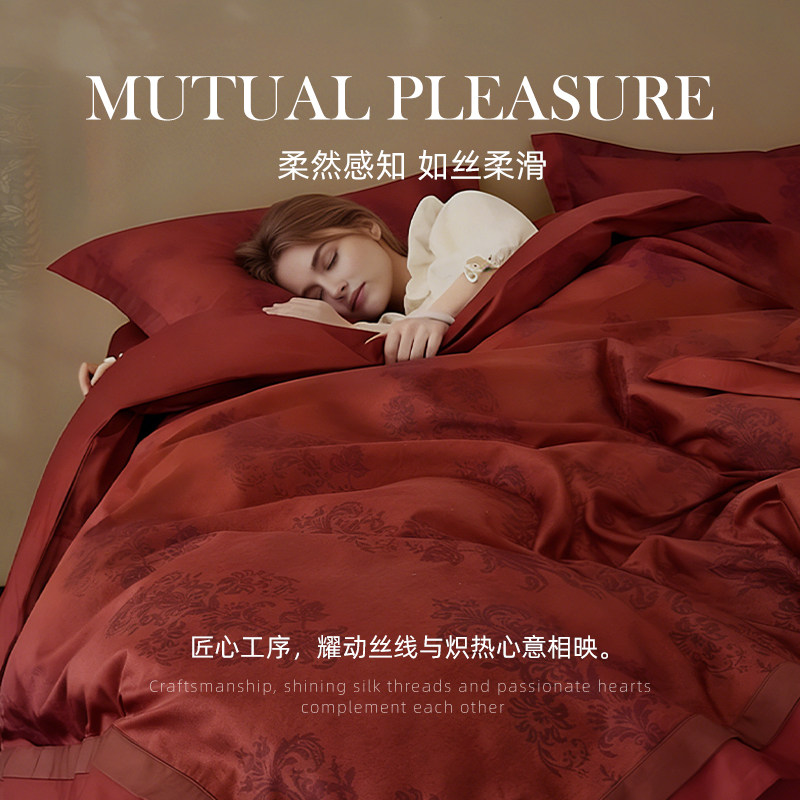 斯得福结婚四件套高级感婚嫁四件套红色婚床被套床单婚房卧室床品