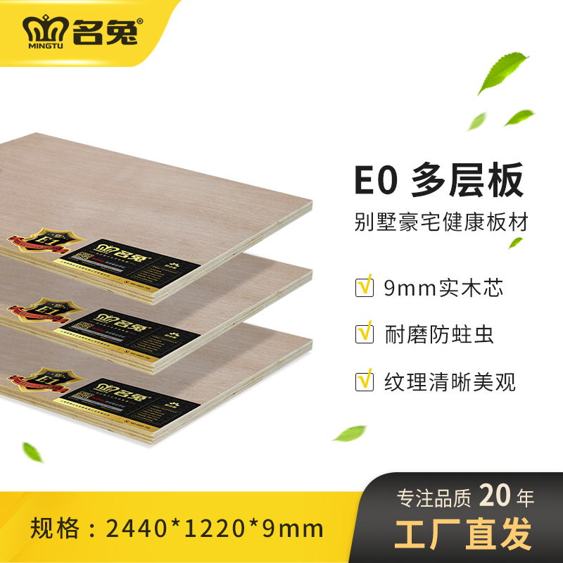 名兔板材 E0多层板9mm 生态胶合板柳桉芯三夹板三合家具衣柜背板