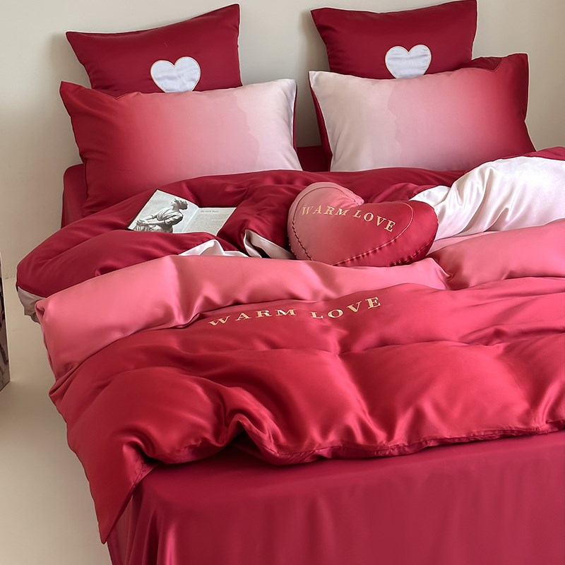 公主风渐变色100S兰精天丝婚庆四件套红色冰丝滑裸睡结婚床上用品