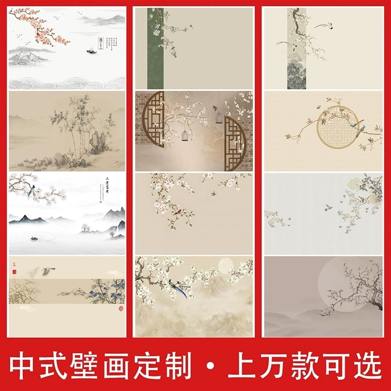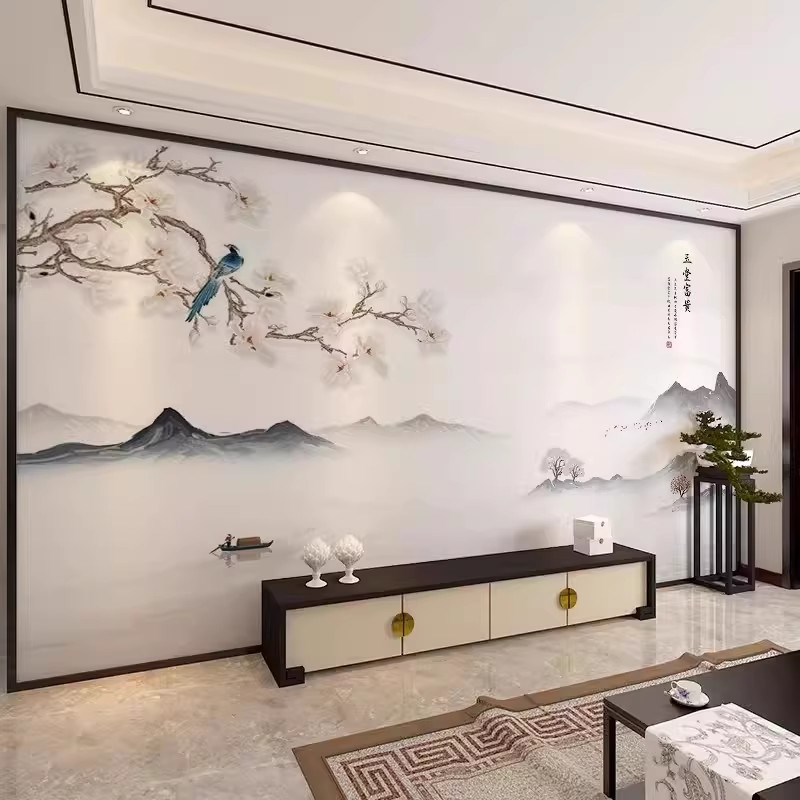 现代简约花鸟壁纸新中式墙布客厅卧室电视背景墙壁纸壁布影视壁画