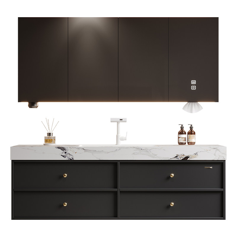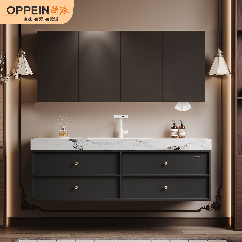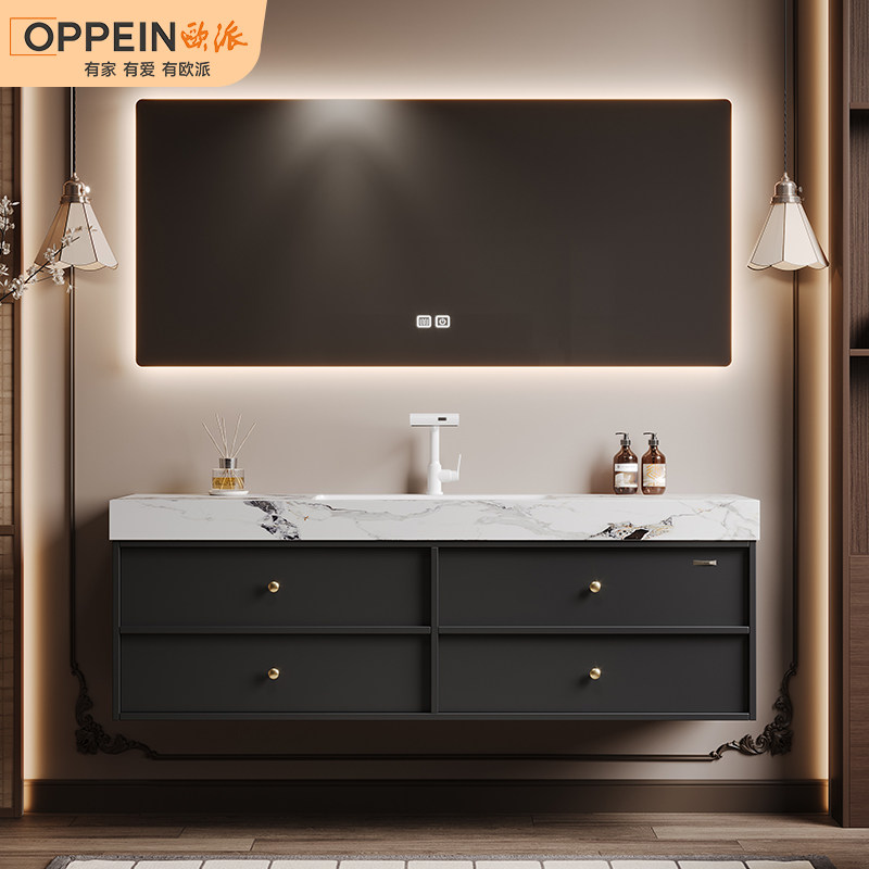 欧派中古风浴室柜组合卫生间岩板无缝一体盆洗漱台洗脸盆柜洗手台