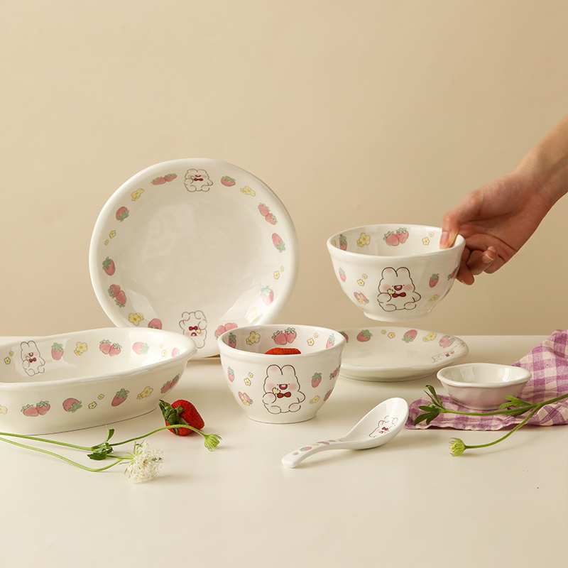 蓝莲花茉茉兔礼盒碗碟套装家用可爱礼品碗一人食新婚礼物餐具礼盒