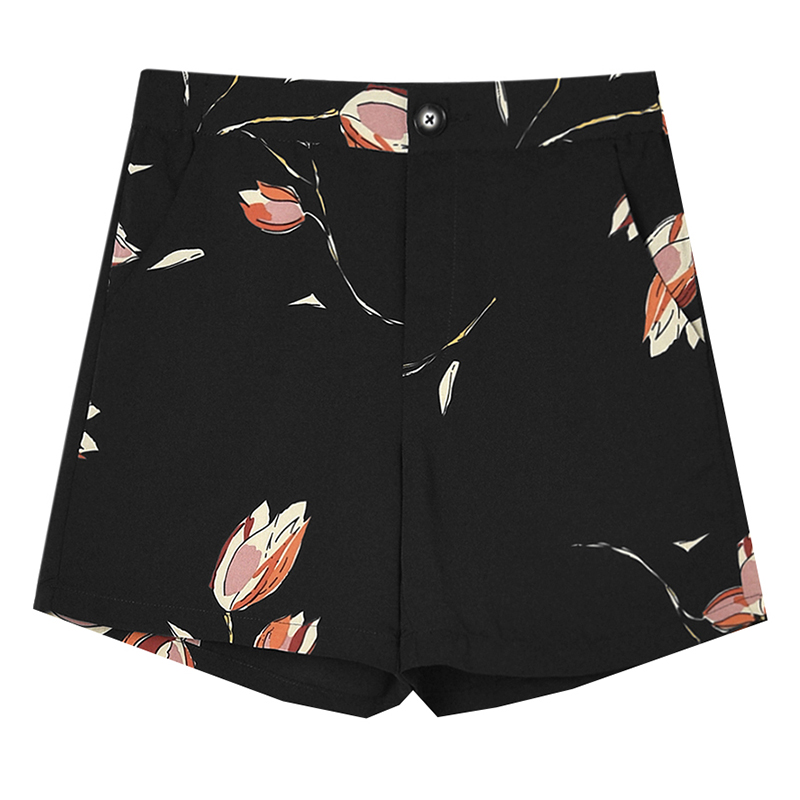 松紧腰短裤雅致印花休闲裤