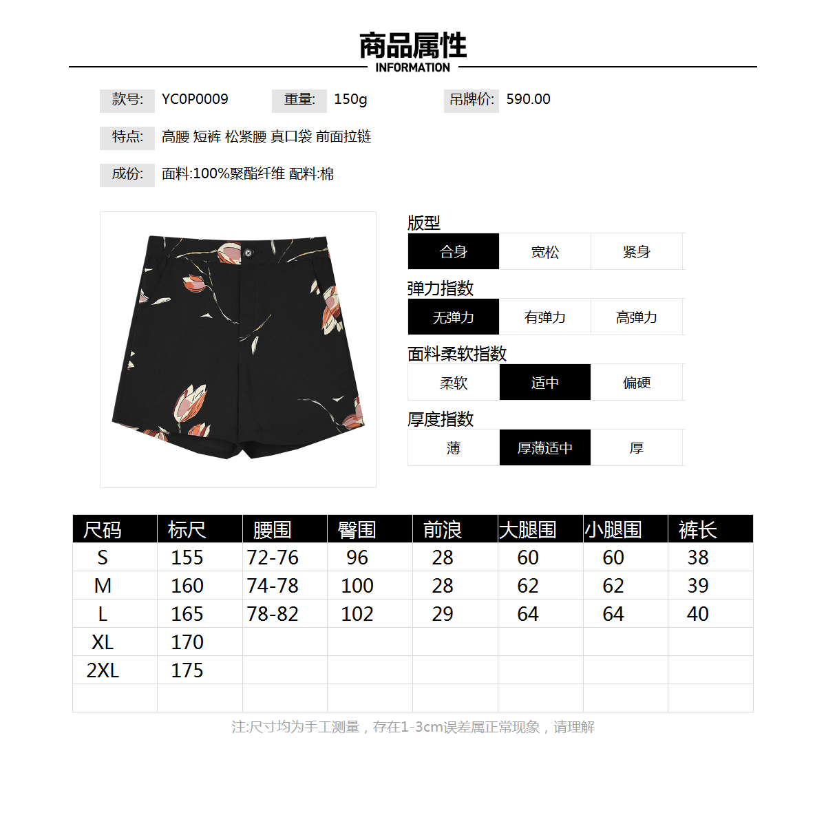 Outlets专柜撤柜正品 YC夏装2025新款松紧腰短裤雅致印花休闲裤女
