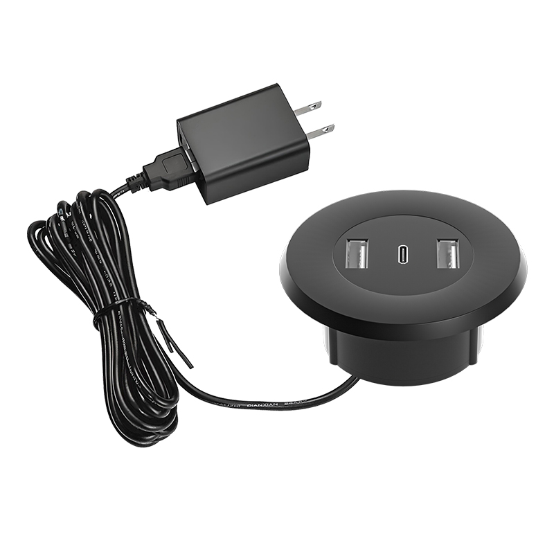 嵌入式USB插座隐藏式暗转桌面沙发床头柜圆形充电器TypeC快充接口