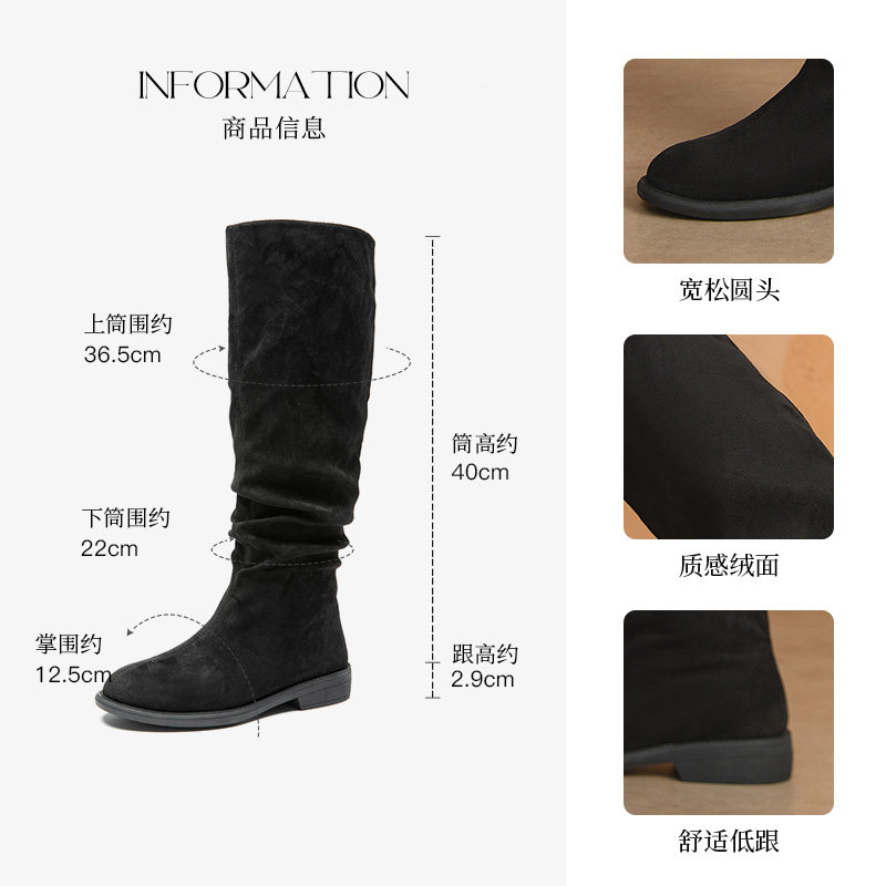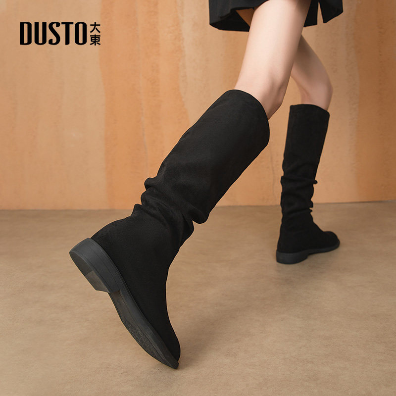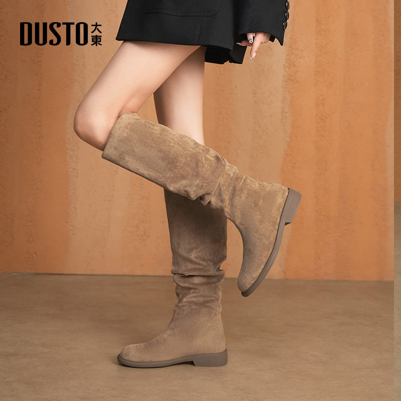 大东长筒靴女2025冬季新款时尚宽筒瘦瘦靴低跟圆头显瘦女靴子0026