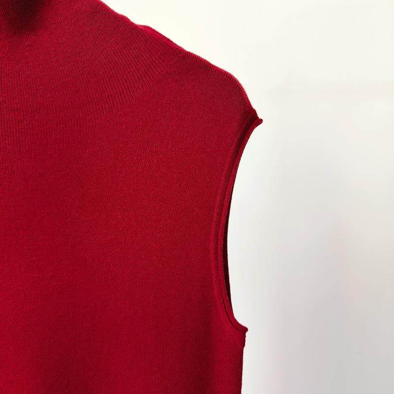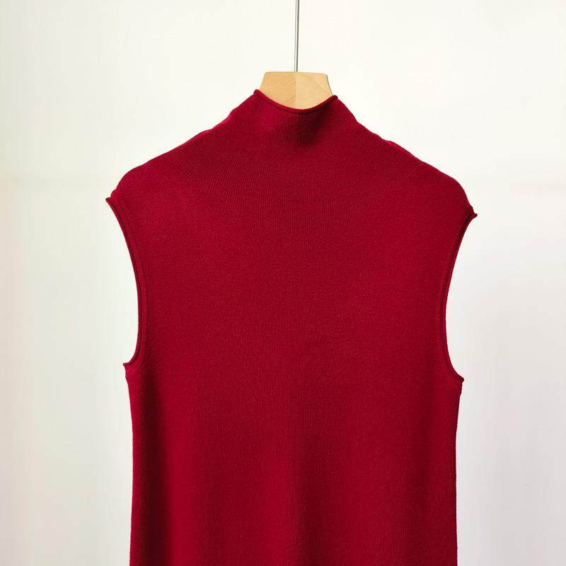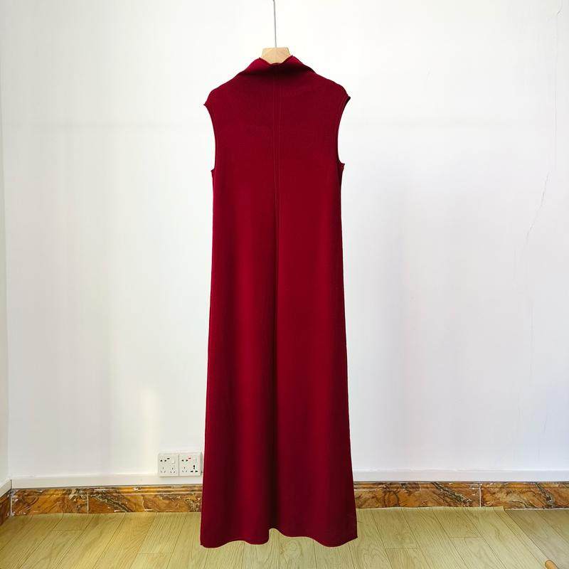 外贸原单超细羊毛半高领红色背心裙宽松无袖长裙大衣内搭连衣裙