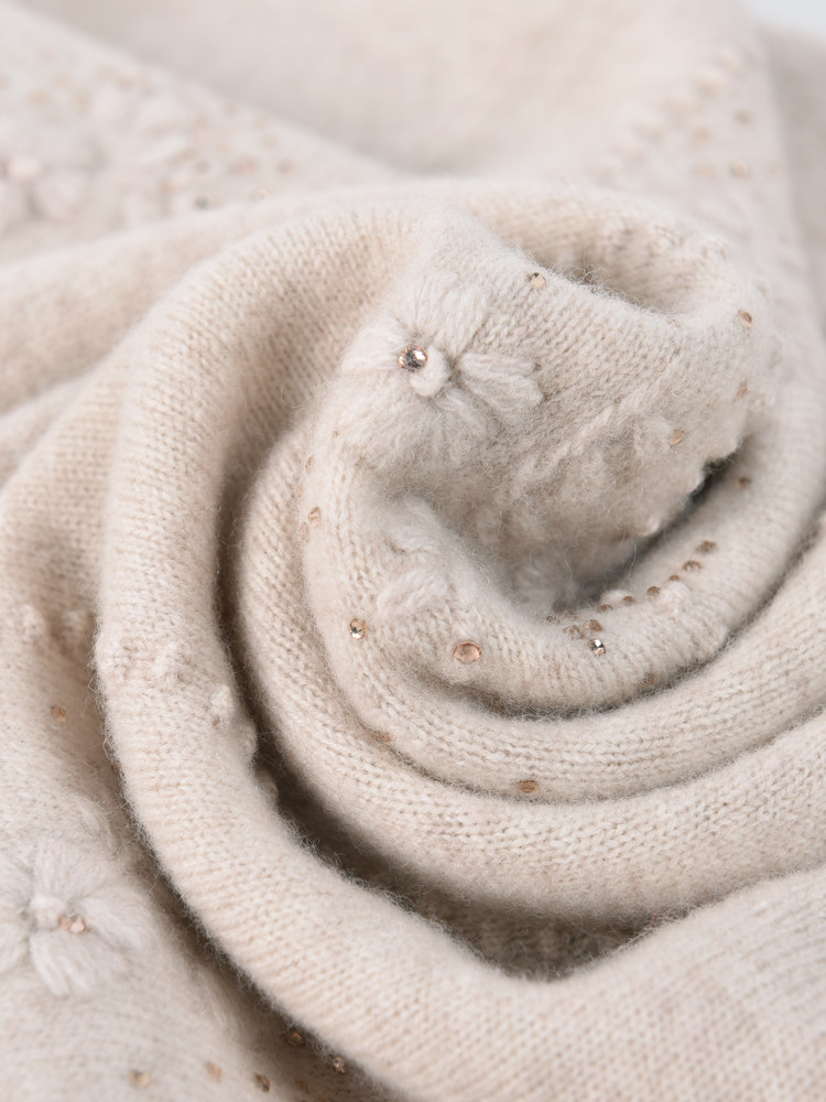 洋气妈妈装秋冬新款纯羊毛衫中老年女装绣花全毛打底衫半高领毛衣