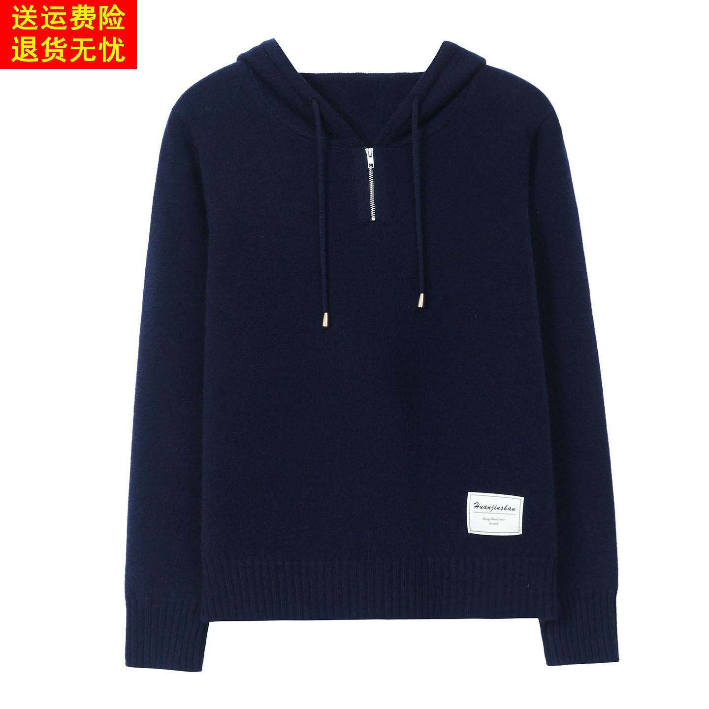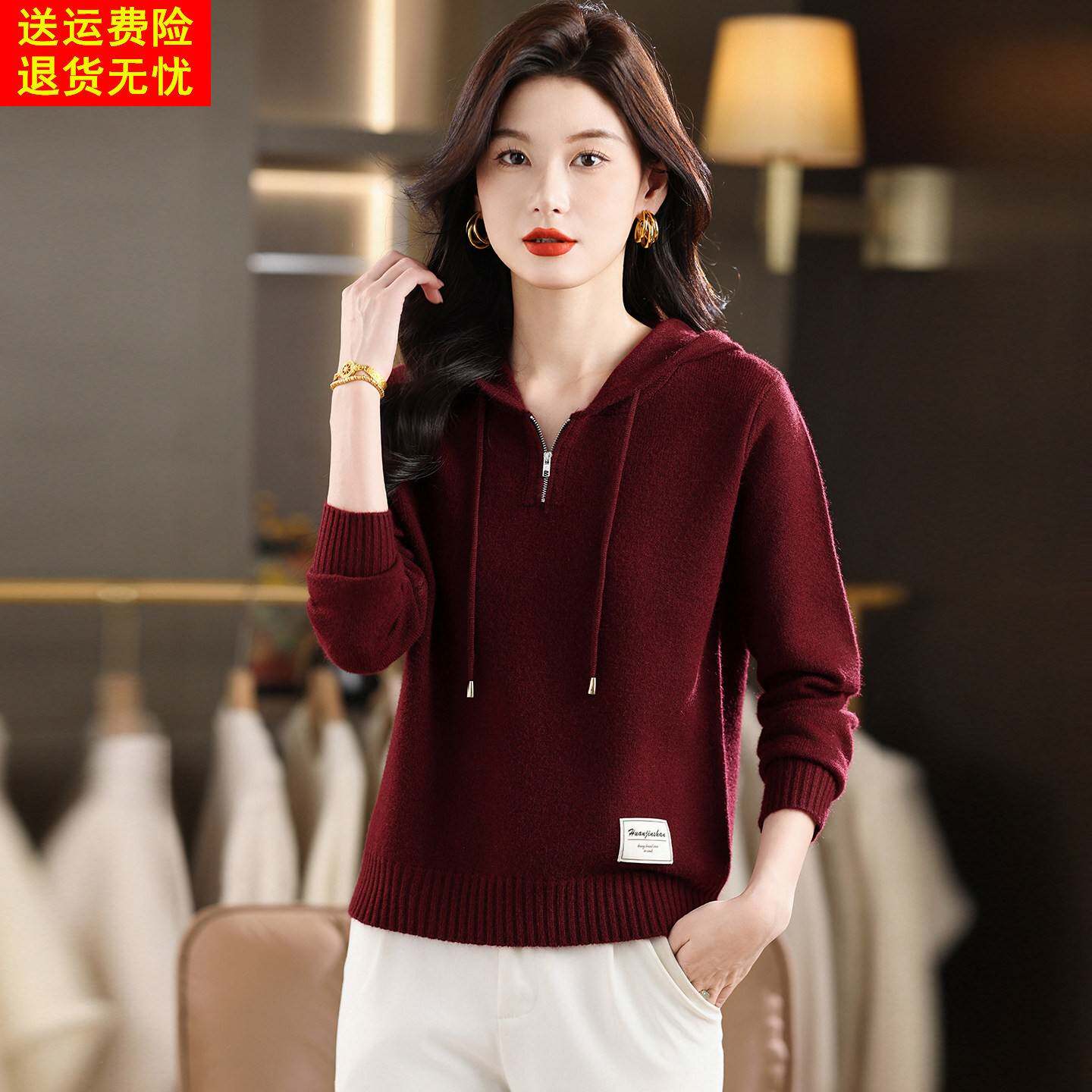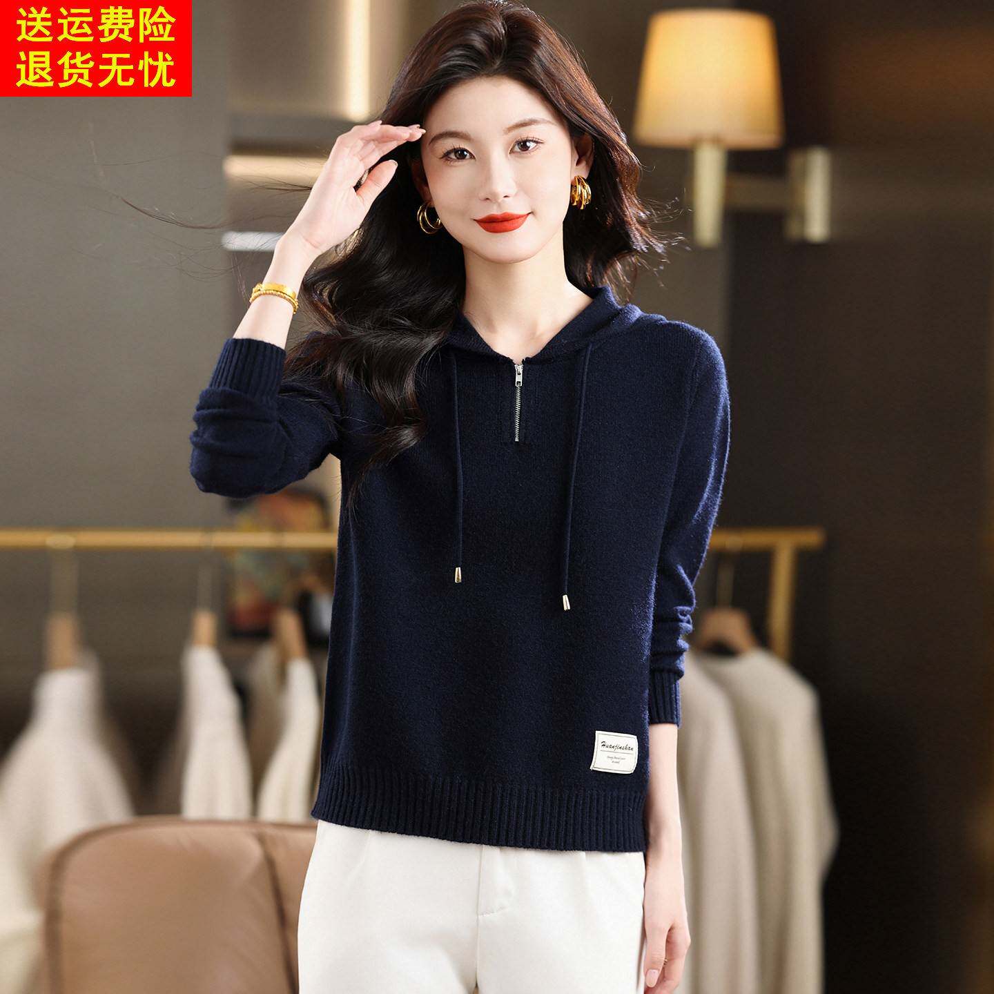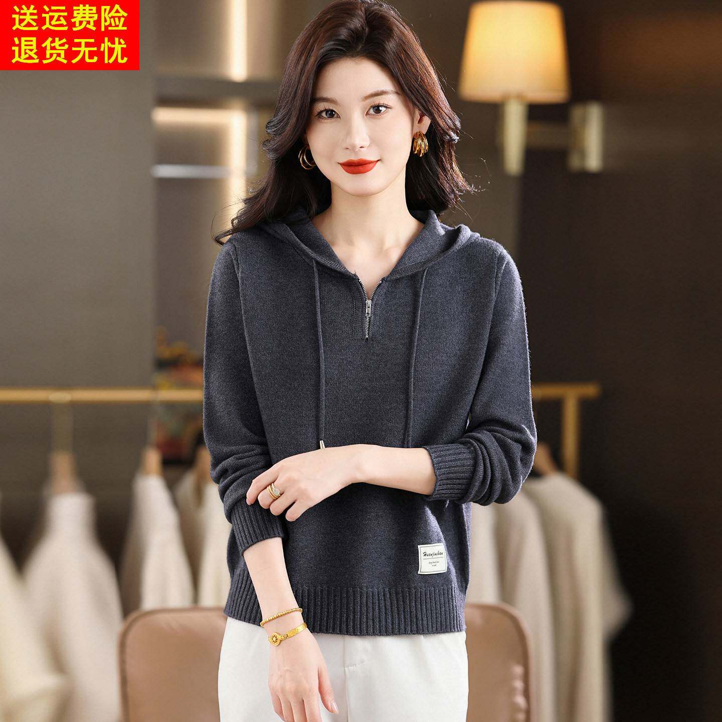 鄂尔多斯市纯羊毛针织衫女秋冬拉链外搭连帽内搭羊绒毛衣打底外套