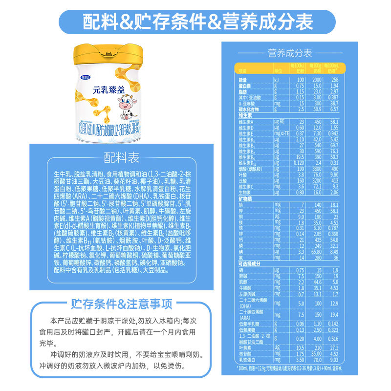 【3送1】完达山元乳臻益3段奶粉818g婴幼儿牛奶粉(12-36月龄)