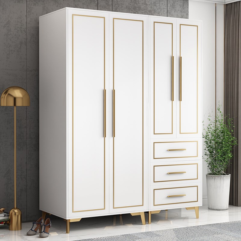 后现代轻奢衣柜简约主卧室平开门四门组装收纳柜家用经济型大衣橱