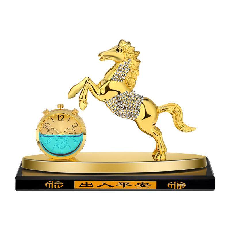 新款直销创意汽车摆件马到成功合金时钟金马摆件车内装饰香薰车上