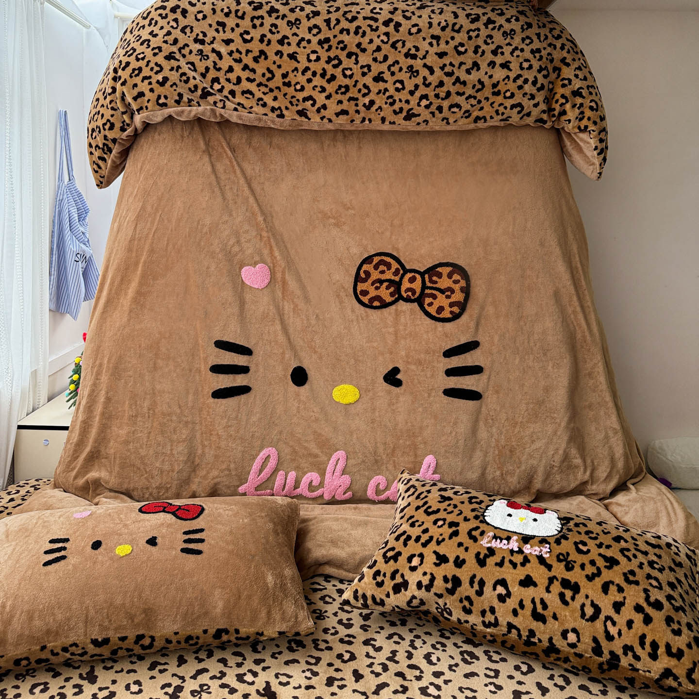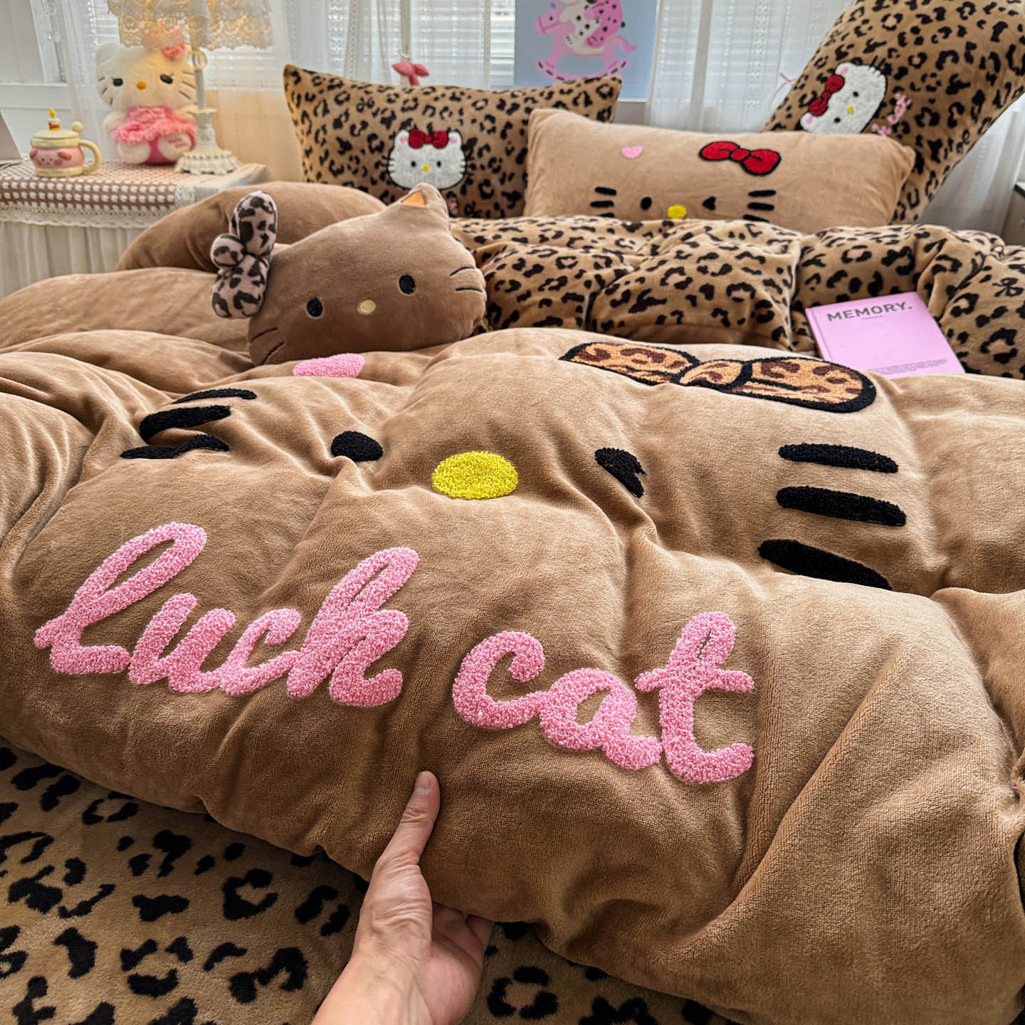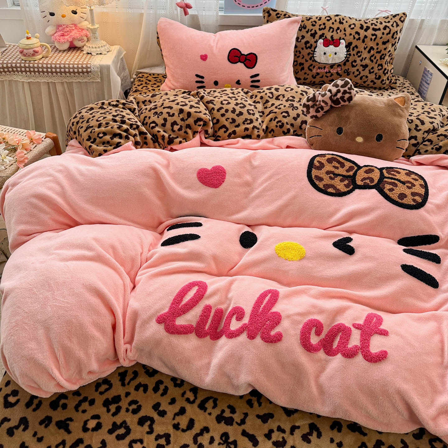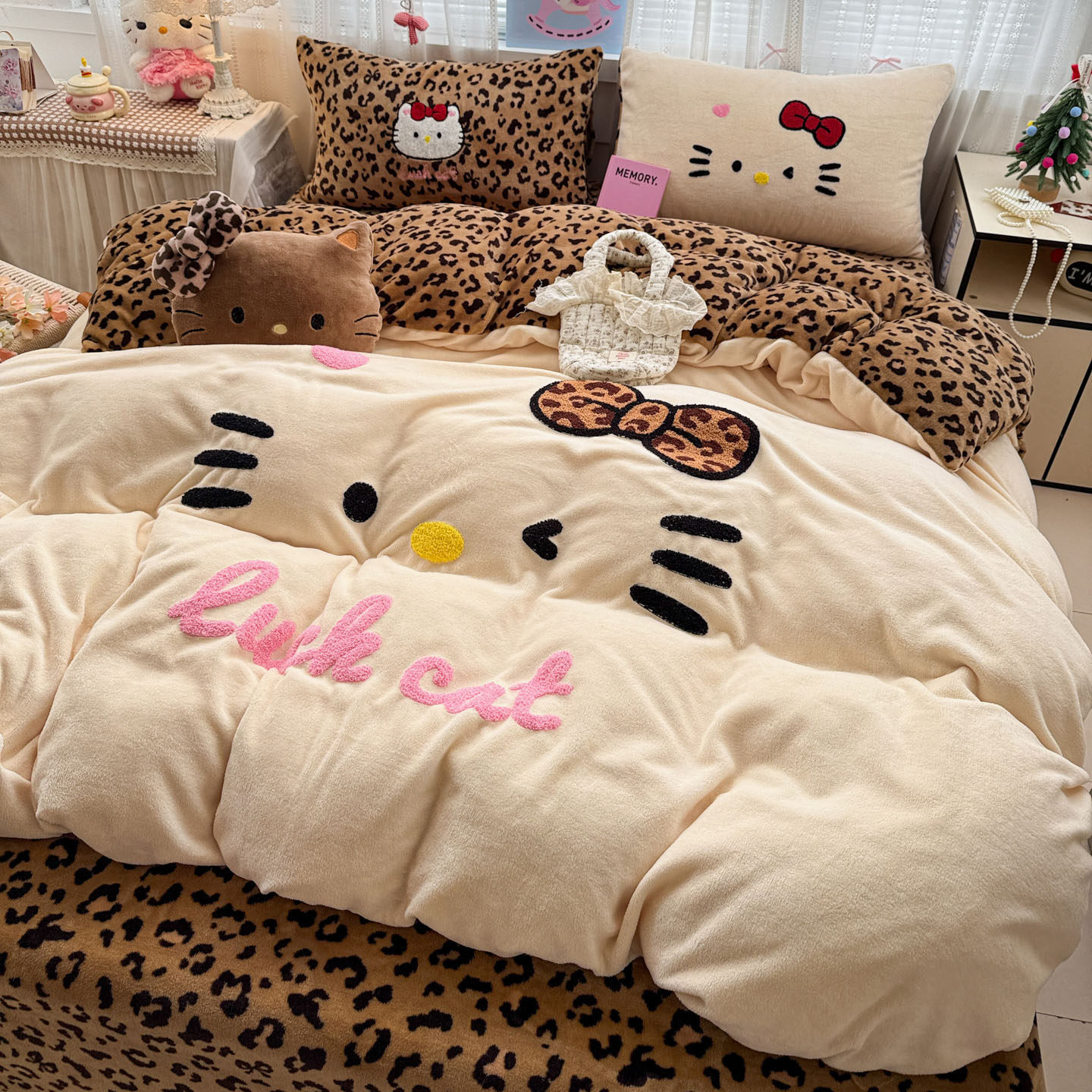 可爱kt猫四件套床上加绒牛奶绒被套学生宿舍冬季珊瑚绒床单三件套