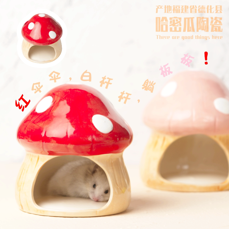 蘑菇小宠通用陶瓷窝仓鼠金丝熊降温屋消暑窝睡觉窝房子小宠用品
