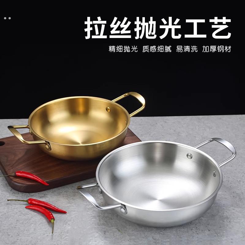 韩式泡面锅不锈钢干锅单人火锅浅汤锅商用部队小煮锅拉面双耳