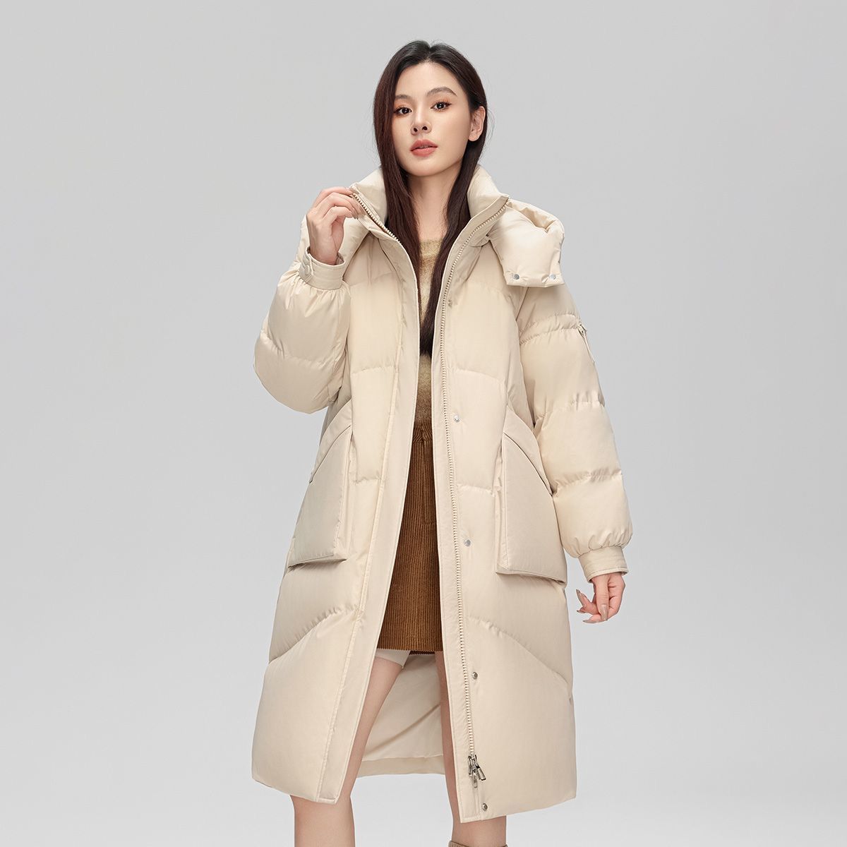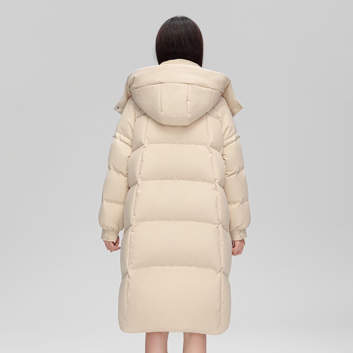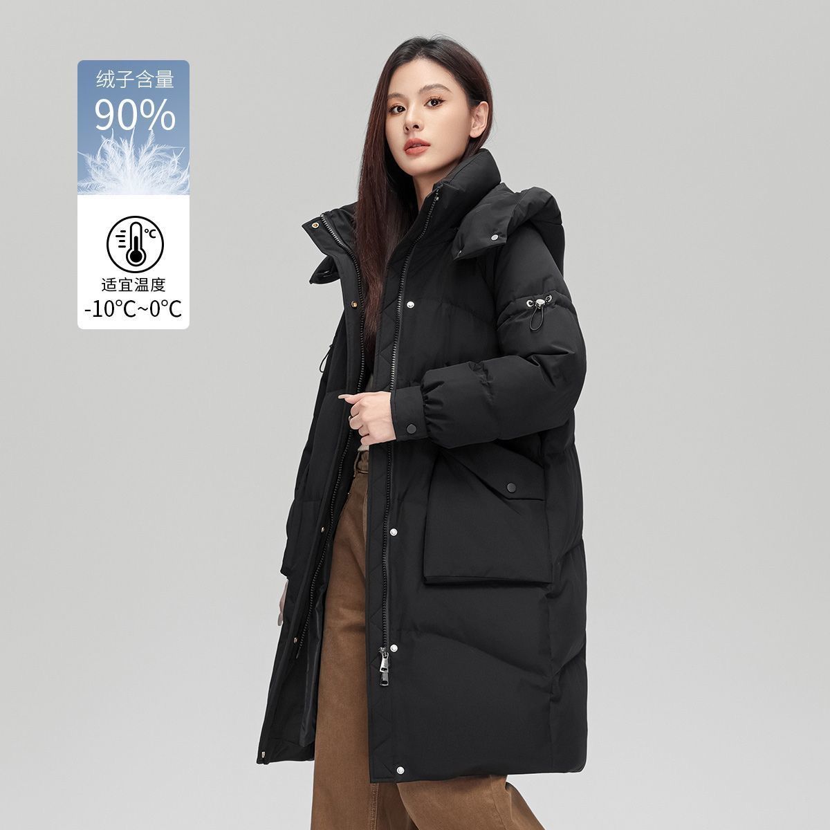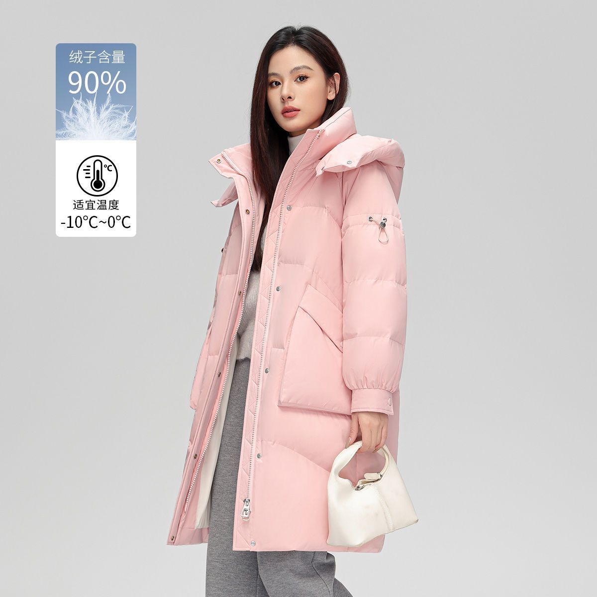 茵曼25年冬季中长款时尚鸭绒连帽羽绒服女中长款宽松加厚保暖外套
