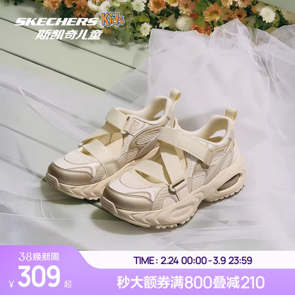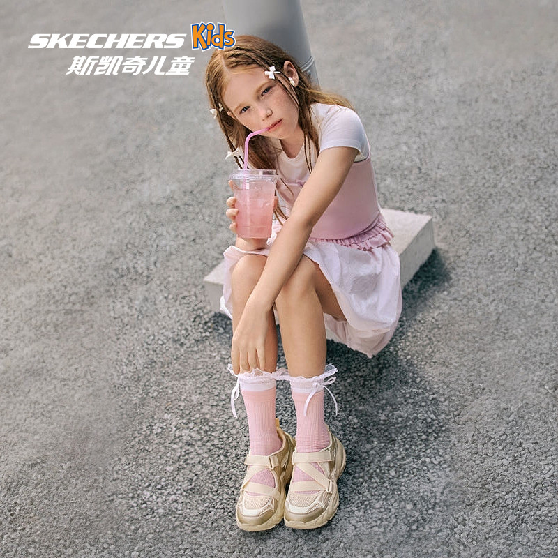 Skechers斯凯奇女童时尚老爹鞋春夏透气网布大童鞋儿童防滑运动鞋