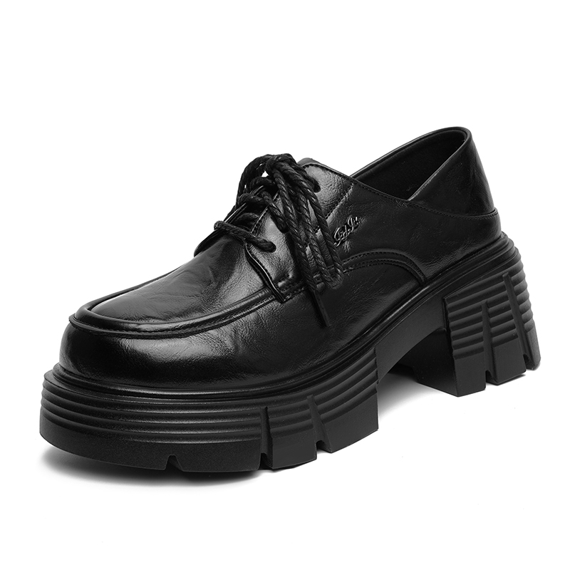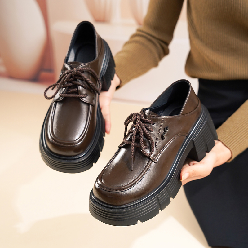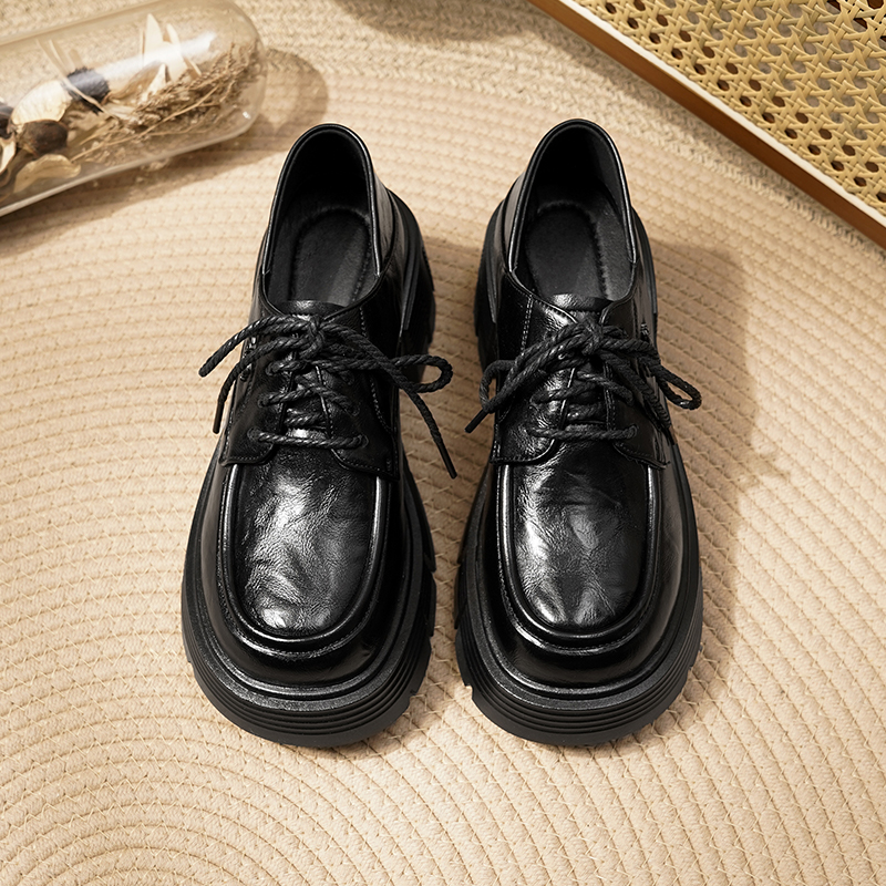 厚底增高小皮鞋女真皮2025秋季新款复古黑色系带英伦风百搭乐福鞋