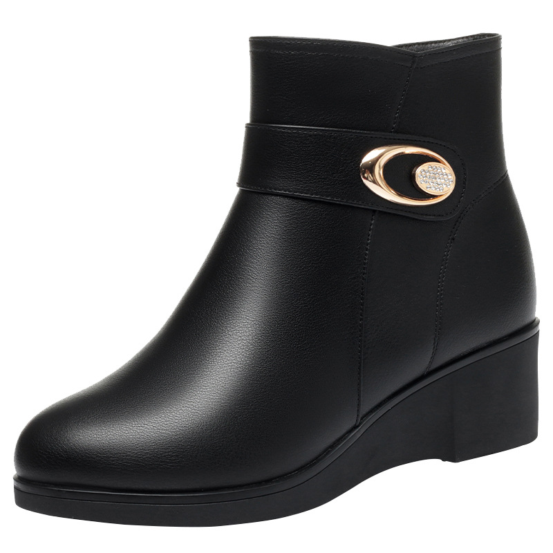 坡跟短靴女秋冬季新款时装靴子中老年女鞋厚底防水台妈妈鞋子