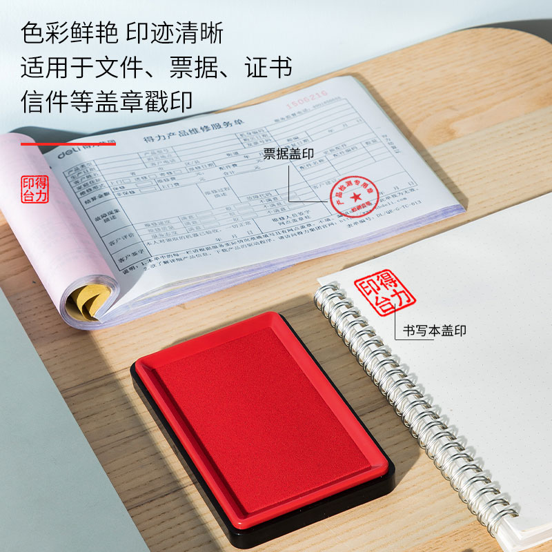 得力快干印台红色长方形大号速干印尼银行财务盖章用印油小号便捷秒干按手印指纹蓝色黑色印章印泥盒办公用品