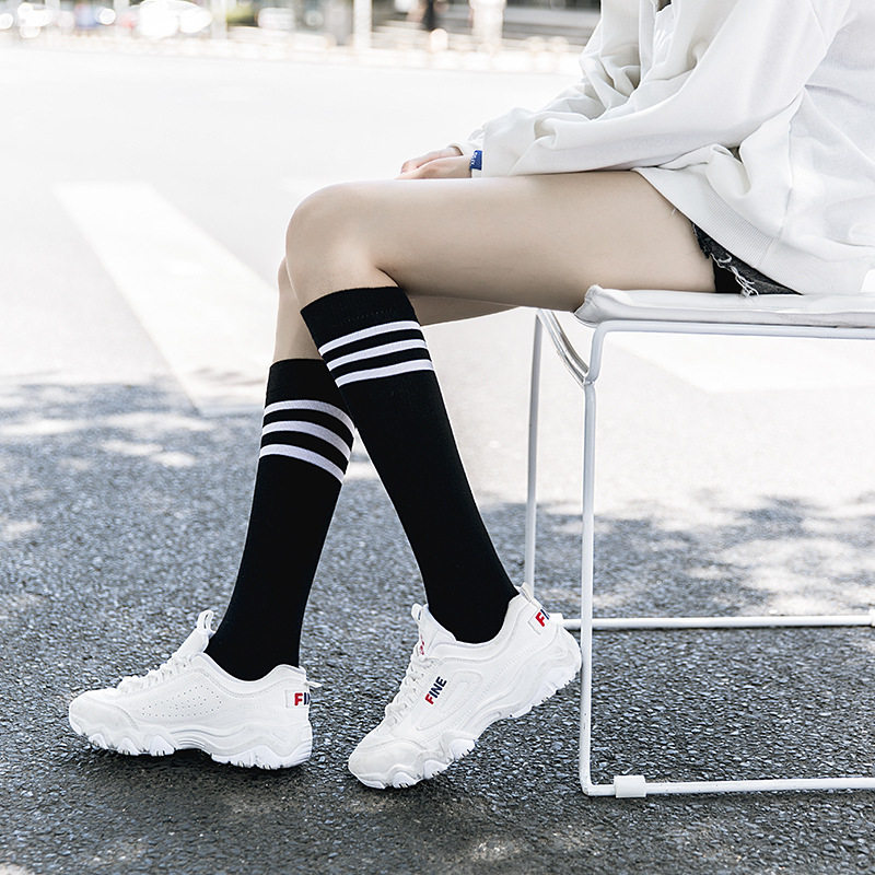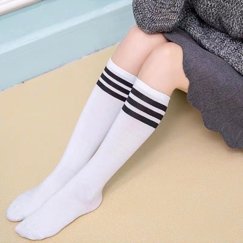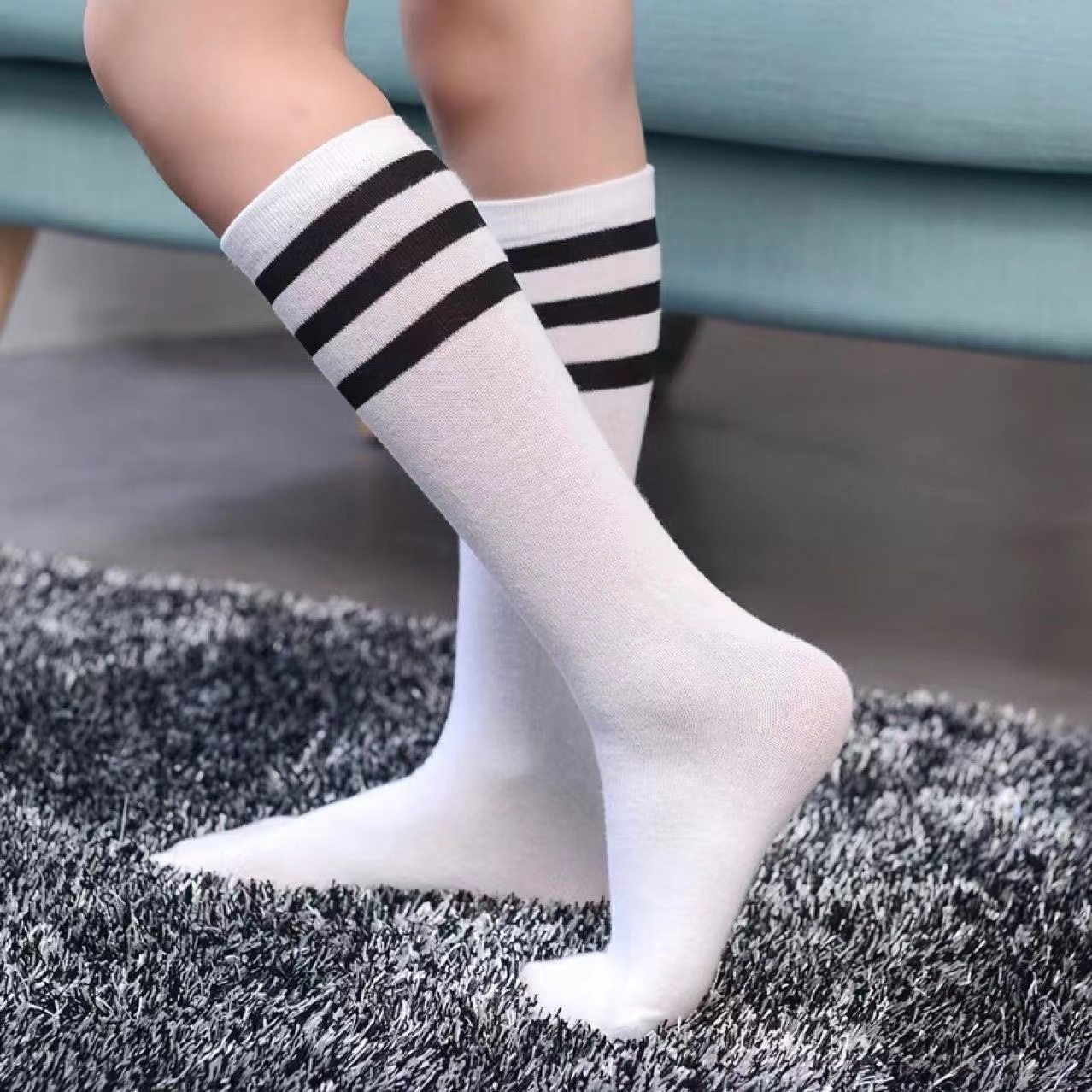 秋冬新品学生长筒袜jk小腿袜搭配制服表演专用条纹白色足球拉拉队