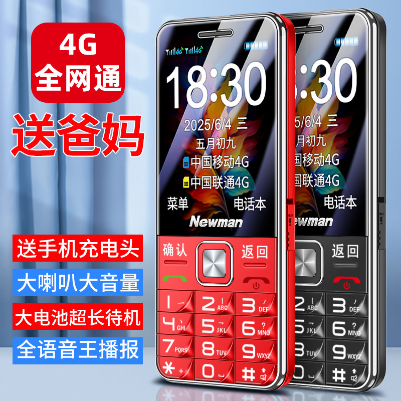 纽曼T68老年手机大屏大字大声音4G全网通超长待机老人机男女士移动联通电信4G全网通版学生专用智能按键手机