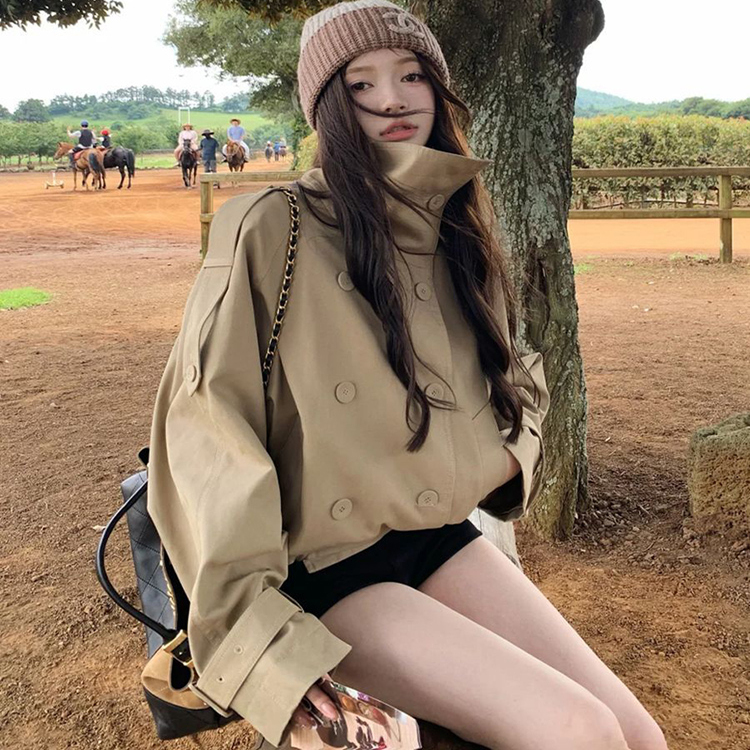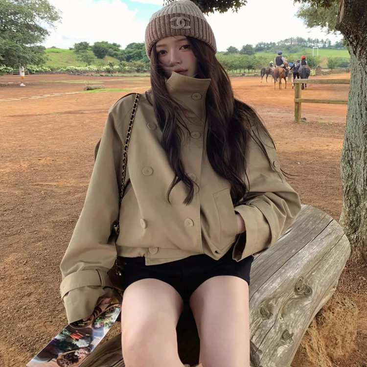 韩系慵懒风复古卡其色风衣女早秋季新款高级感气质工装夹克短外套