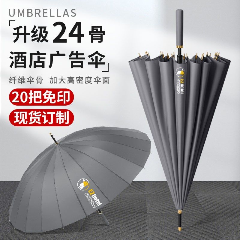 灰色长柄雨伞订制logo来图定制24骨自动直杆伞酒店接待广告伞印字