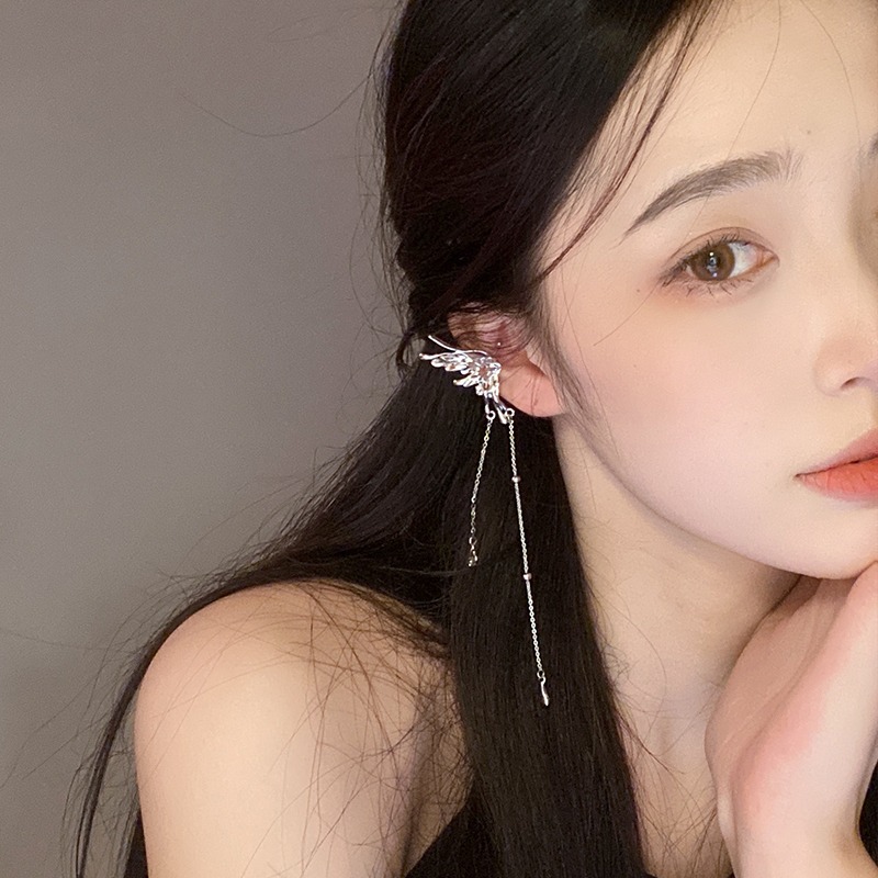 长款流苏精灵耳骨夹无耳洞小众高级天使之翼耳环森系时尚轻奢耳夹