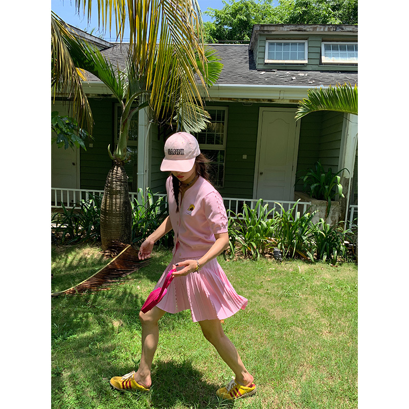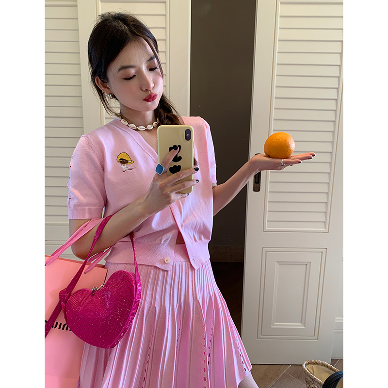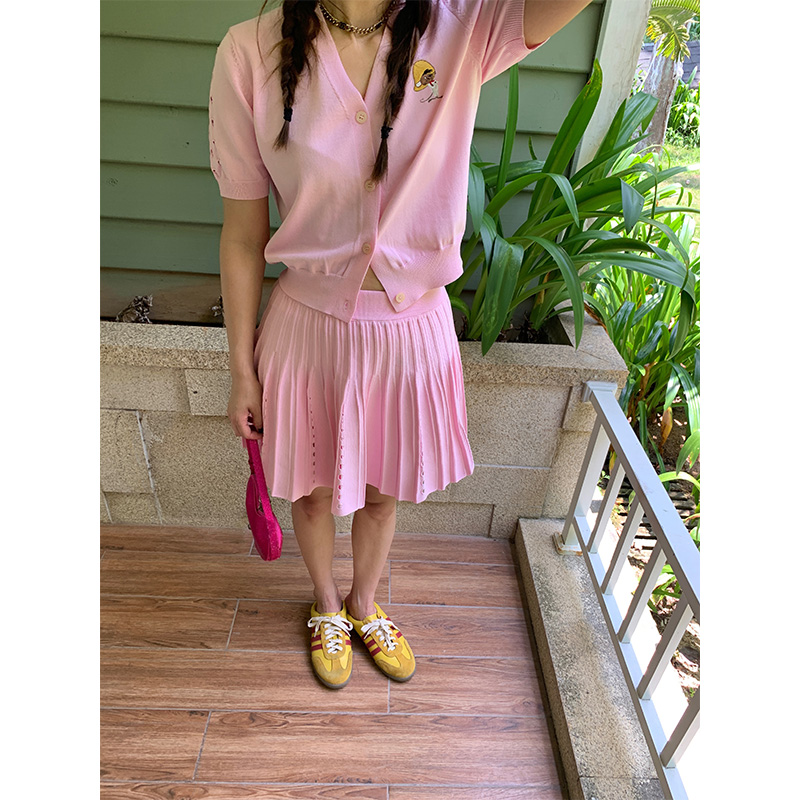 落落狷介套装女2025新款夏装粉色两件套 套装裙小个子针织半身裙
