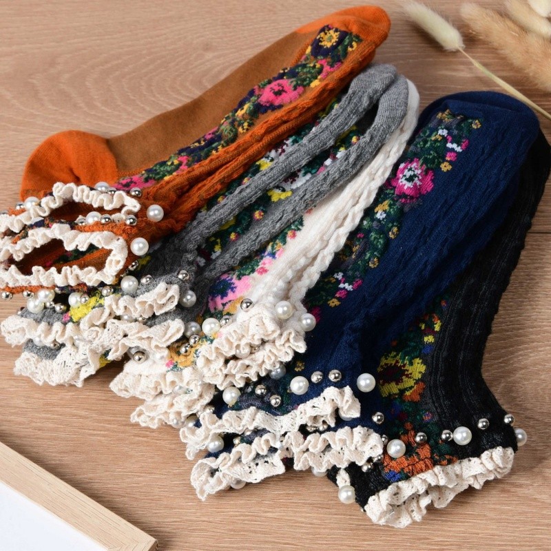 2023棉袜日系碎花珠珠袜ins女短筒小碎花袜子女网红
