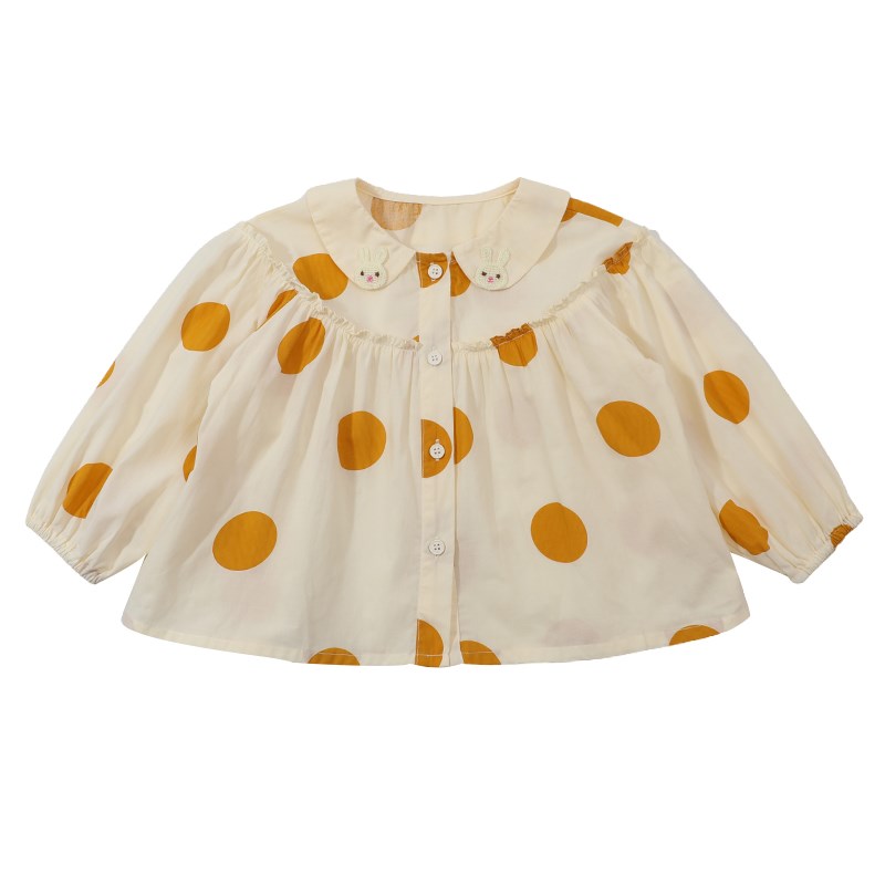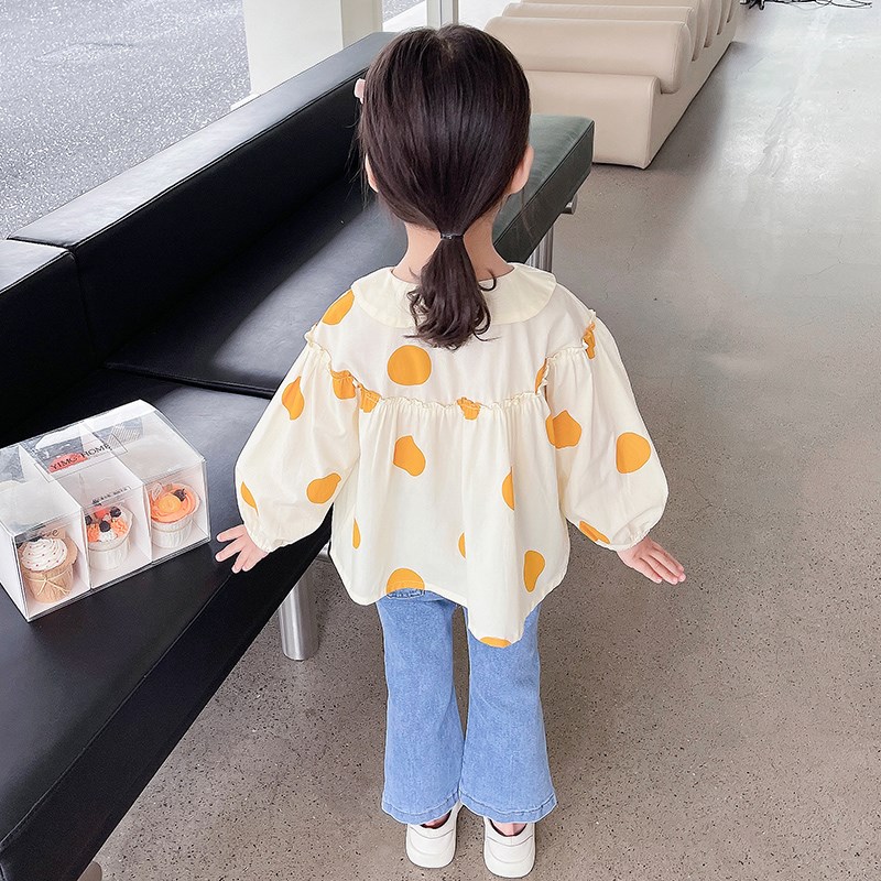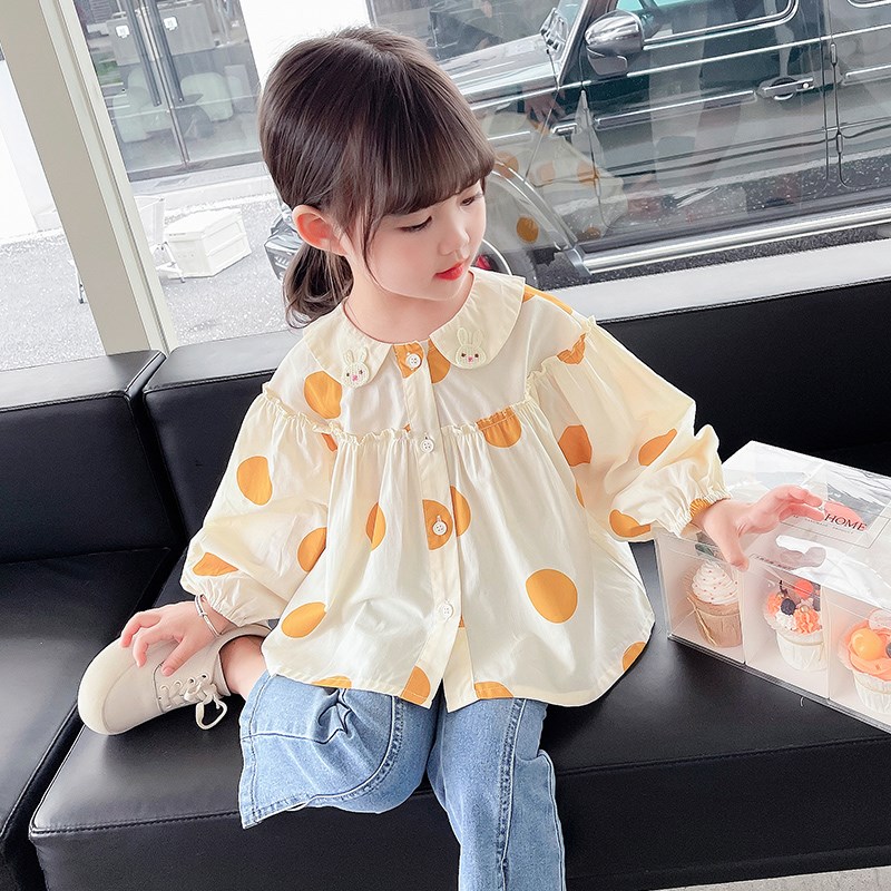女童衬衫春秋2024新款波点娃娃衫儿童衬衣女纯棉女宝长袖上衣童装