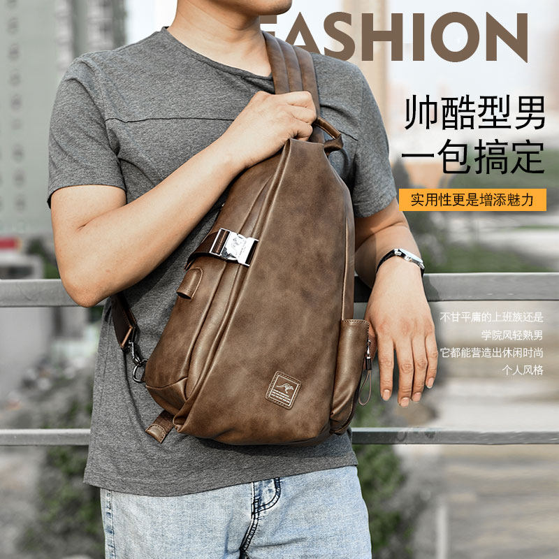 穆斯科袋鼠斜挎包男潮牌胸包时尚休闲街头斜肩包大容量单肩男包潮