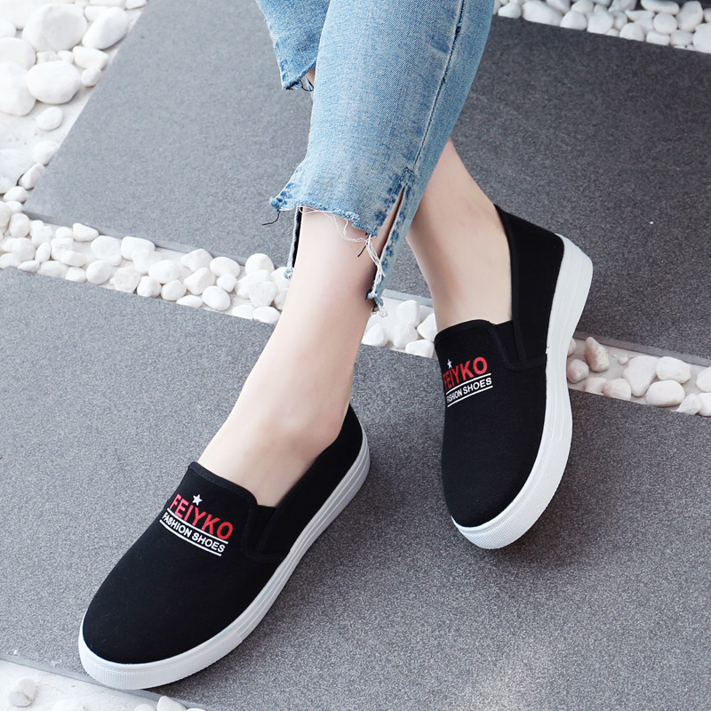 懒人鞋女帆布鞋一脚蹬爆款老北京新款平底黑色休闲学生单鞋女布鞋