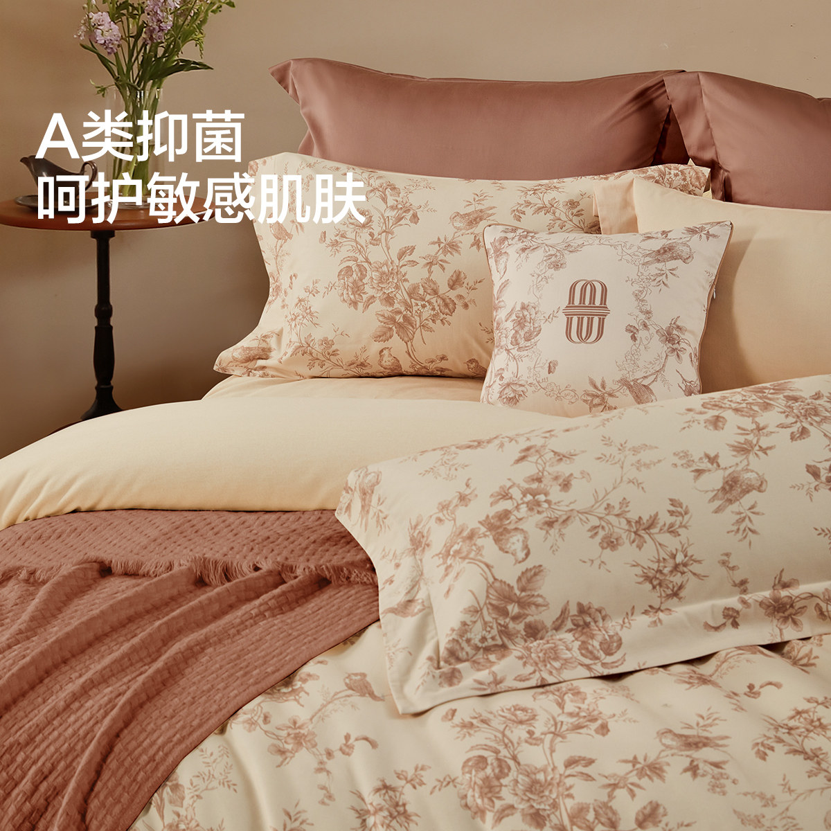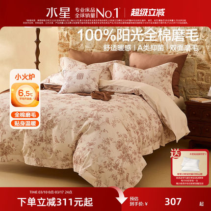 水星家纺全棉磨毛四件套冬季保暖