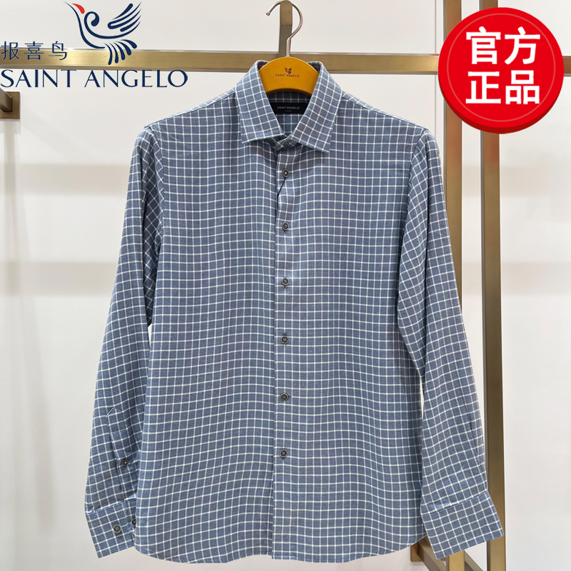 报喜鸟商务休闲男士长袖格子衬衫专柜正品秋冬款修身正装贴身衬衣