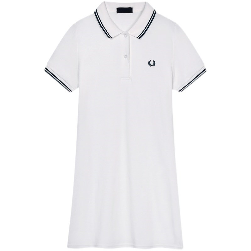 polo短袖连衣裙春秋季新款麦穗长袖白色翻领小清新修身收腰裙子女