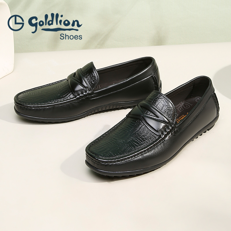 Goldlion/金利来男鞋商务一脚蹬男休闲皮鞋豆豆鞋男款真皮乐福鞋