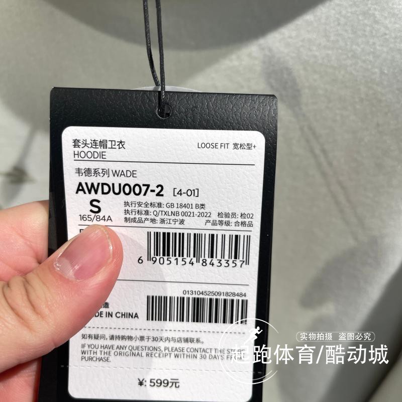李宁卫衣男2024春新款韦德系列潮流休闲舒适连帽套头上衣 AWDU007