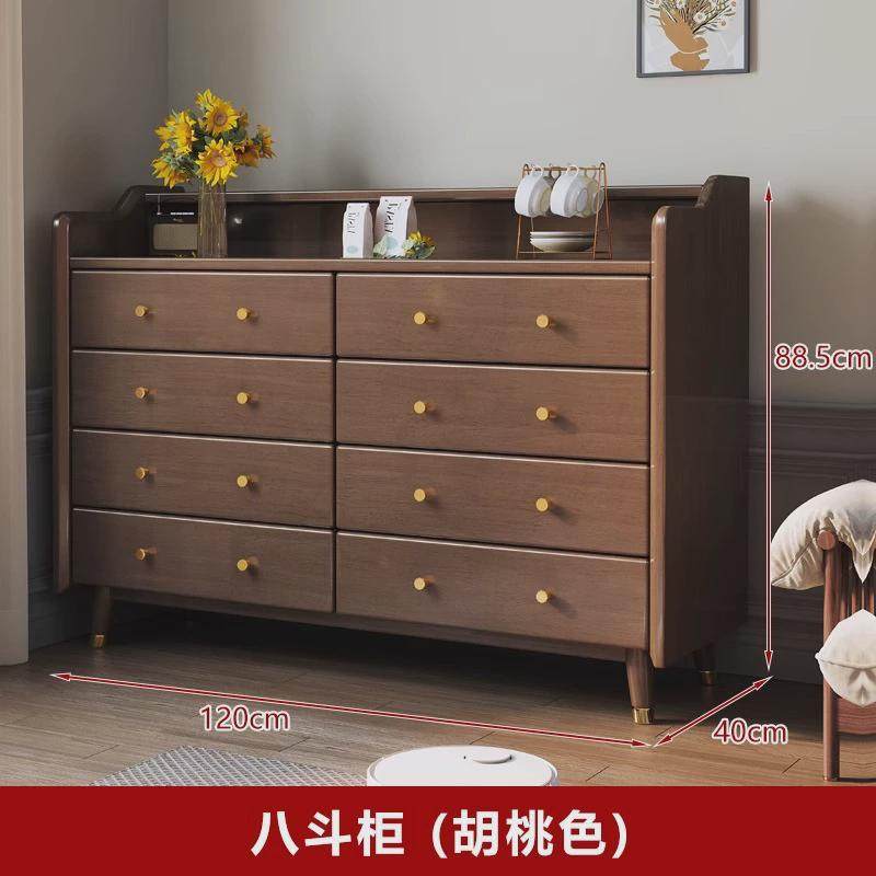 北欧抽现代简约四实木斗柜厨房收纳储物柜客厅双色复古藤编门橱柜