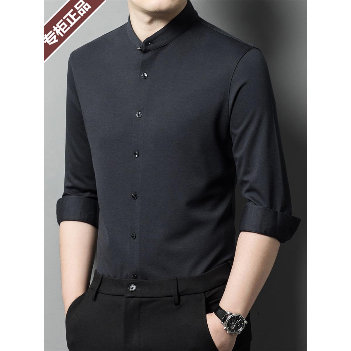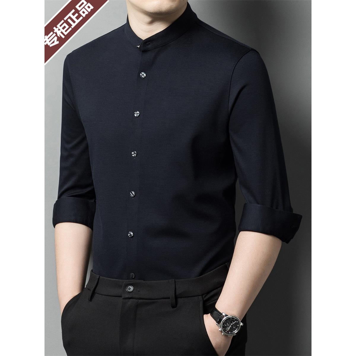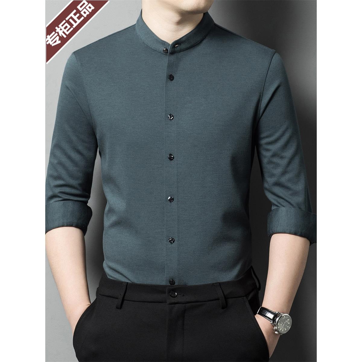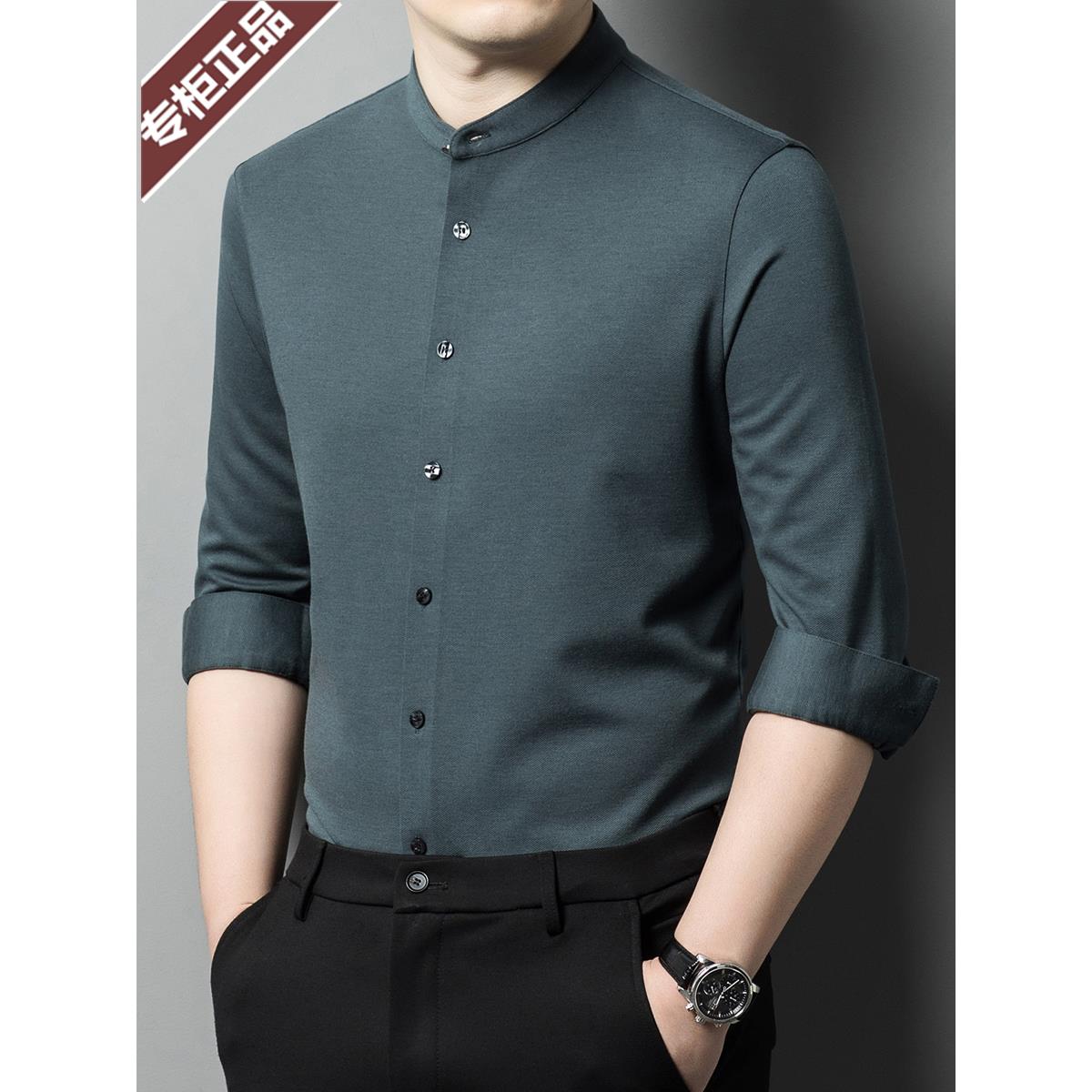 鄂尔多斯市羊绒衬衫男长袖春秋保暖中年立领商务休闲高端羊毛衬衣