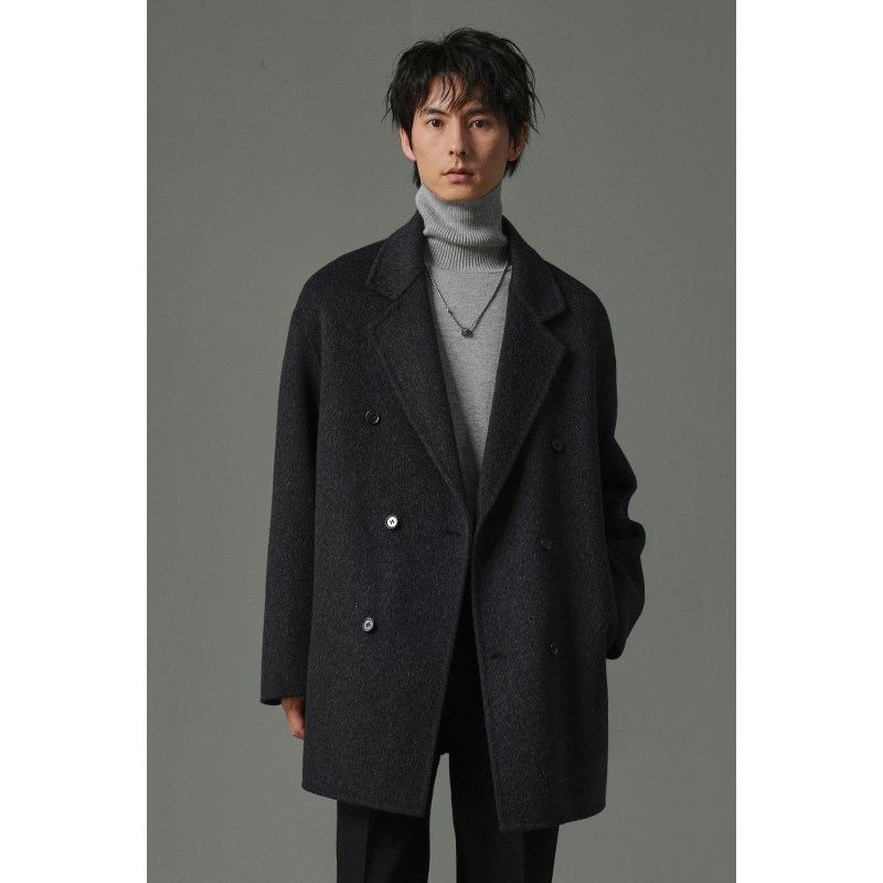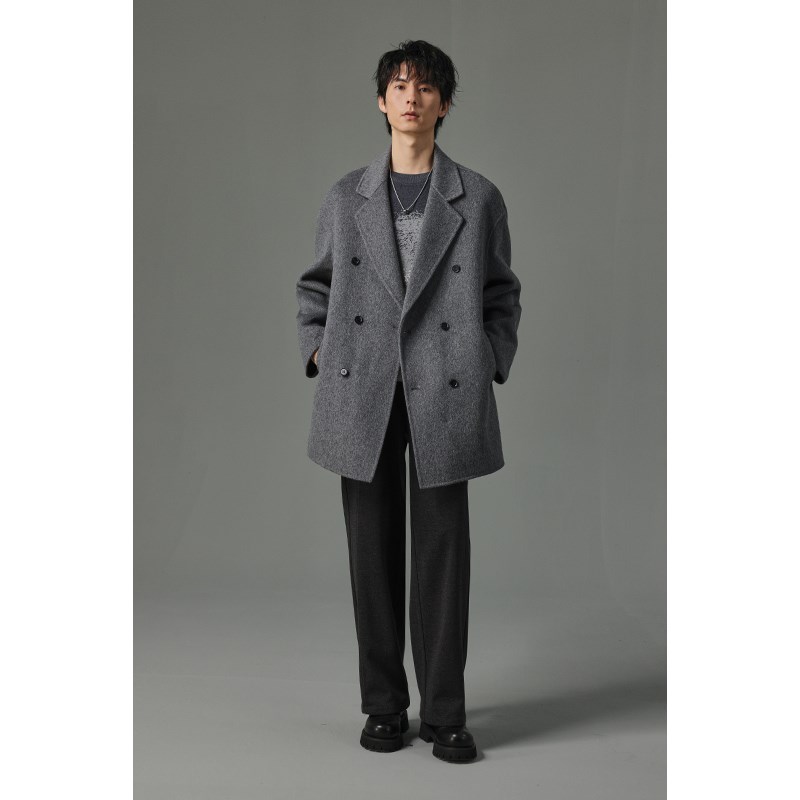 w2x秋冬季950g重磅长毛双面羊毛呢大衣男短款设计感妮子风衣外套