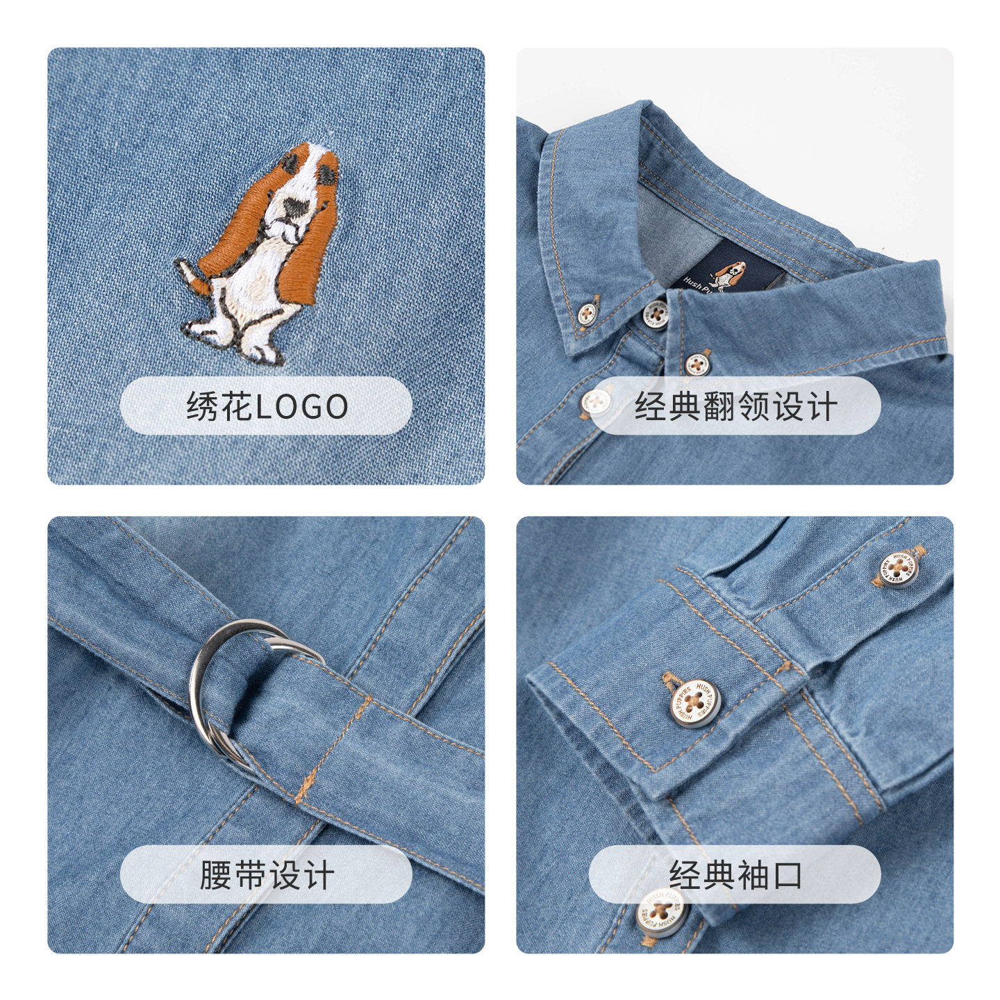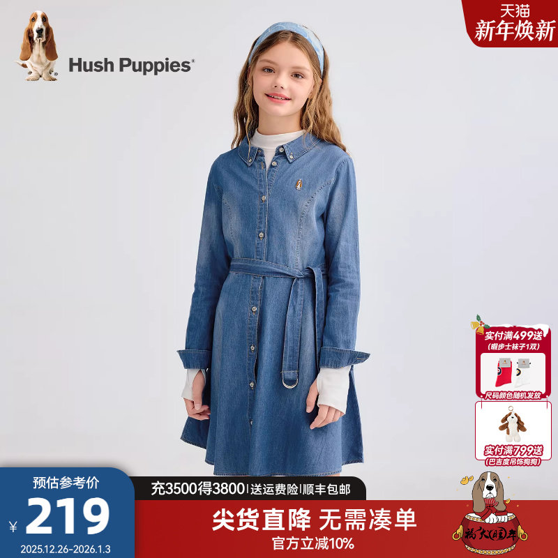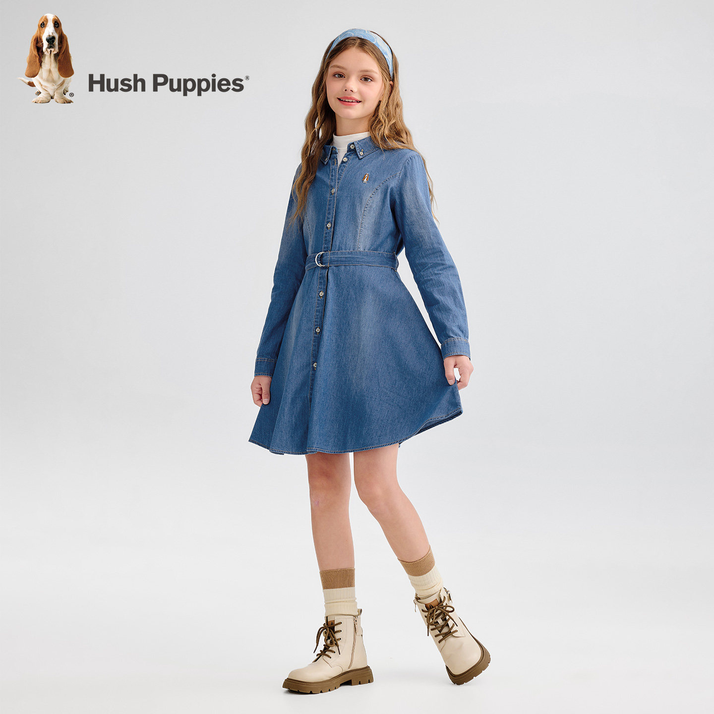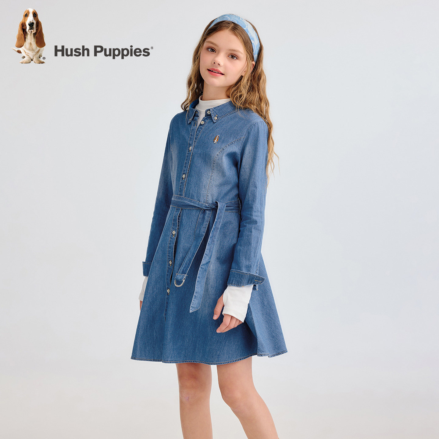 暇步士童装女童牛仔连衣裙大童复古长袖裙春秋新品儿童收腰牛仔裙