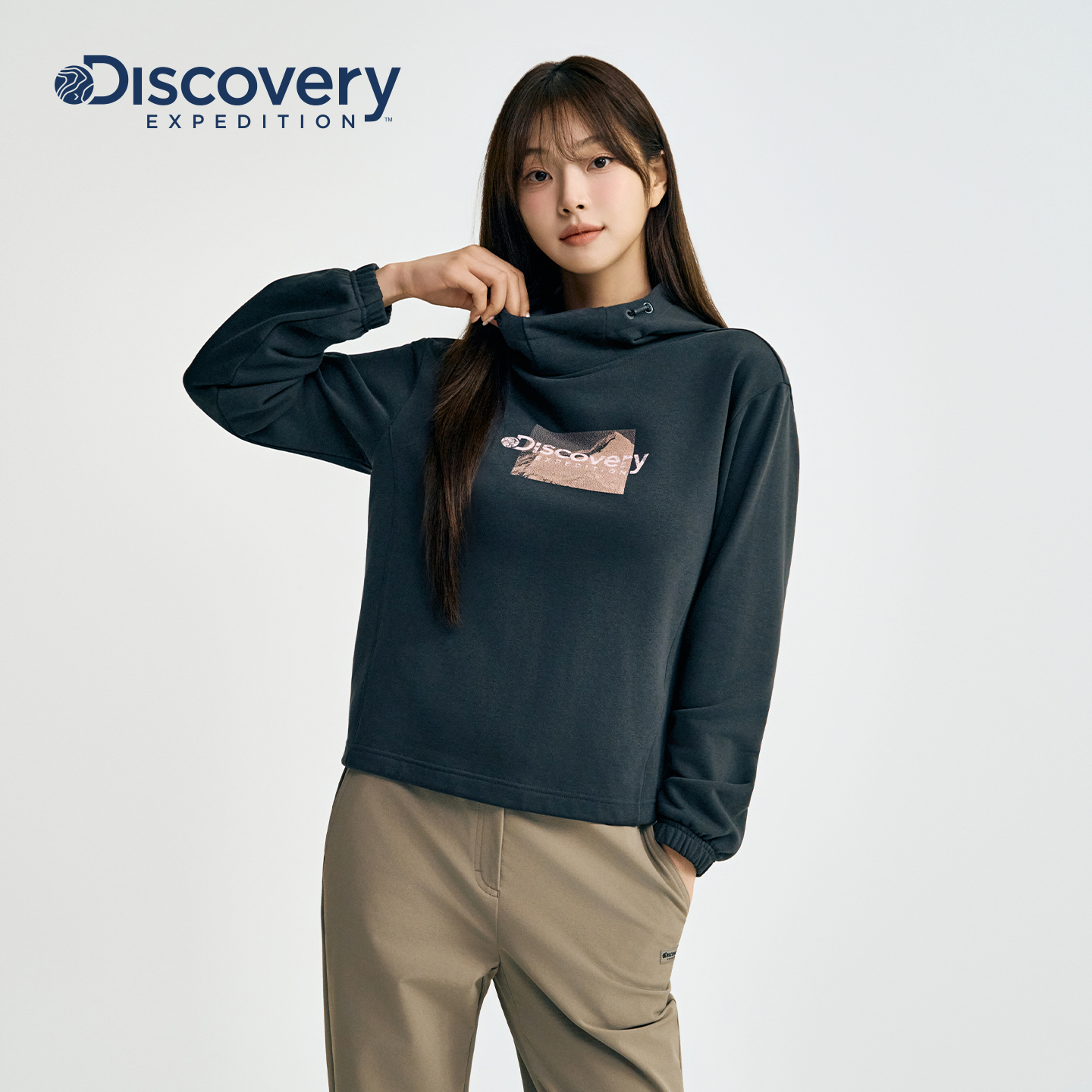 Discovery探索户外徒步连帽卫衣休闲图案套头衫上衣女25秋新品