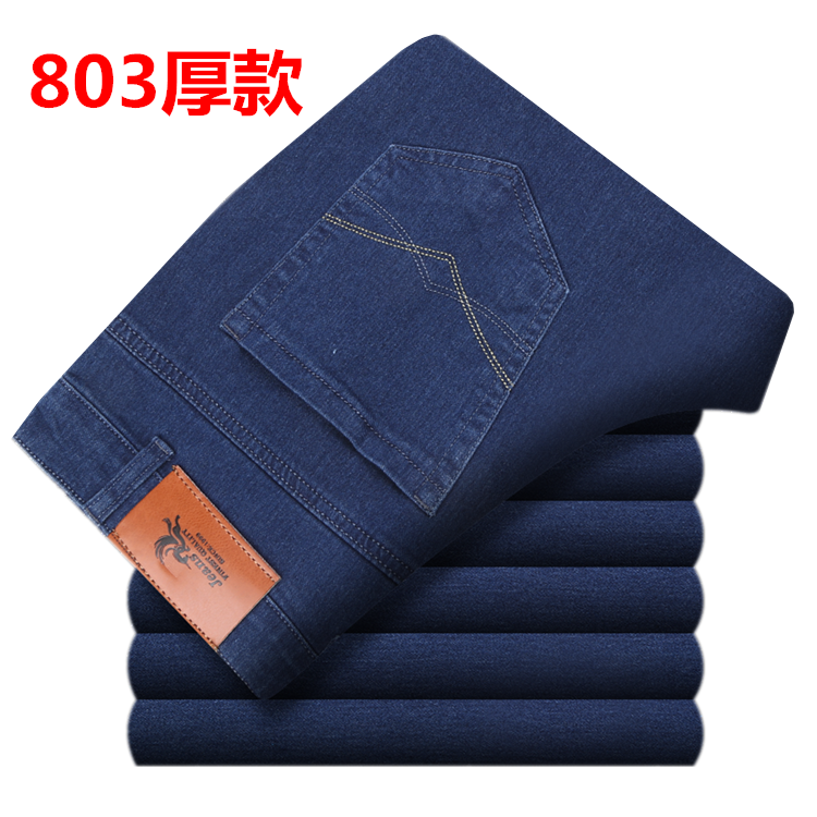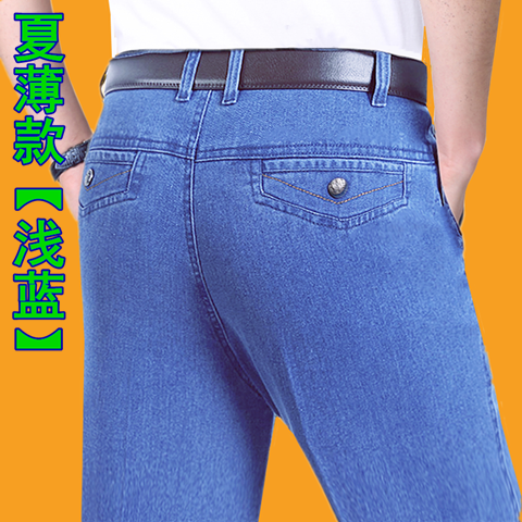 春夏新款牛仔裤男中老年高腰直筒男裤宽松弹力中年薄款爸爸长裤子