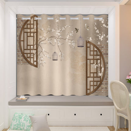 窗帘卧室遮光2022新款新中式吉祥国风飘窗家用客厅免打孔定制